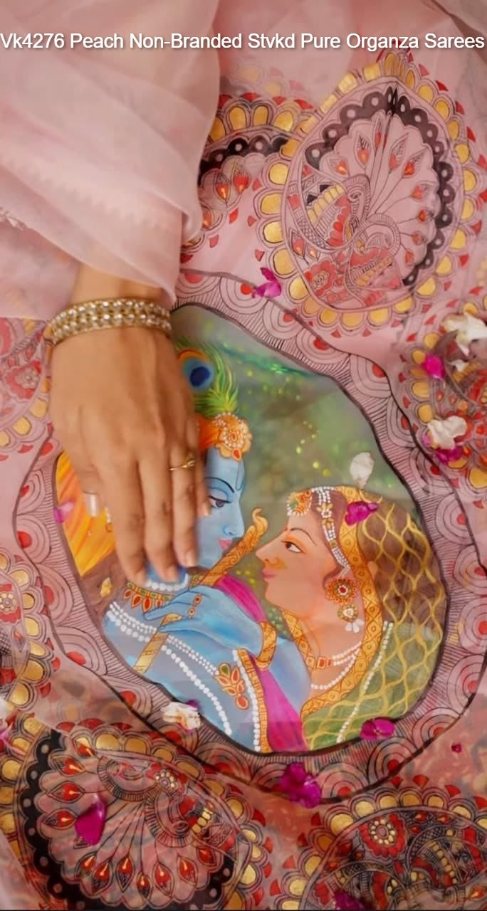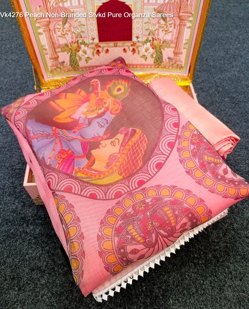 Vk4276 Peach Non-Branded Stvkd Pure Organza Sarees