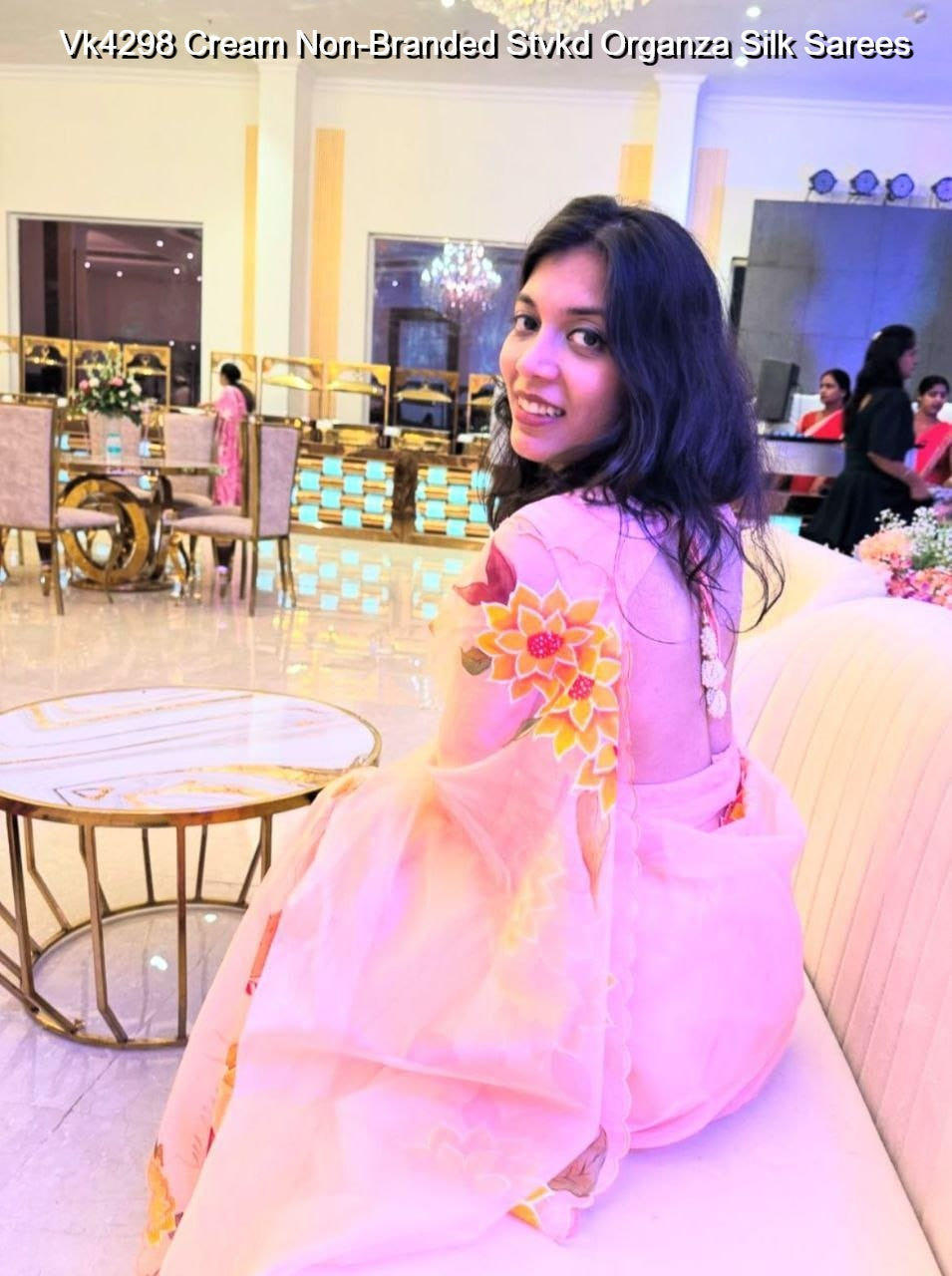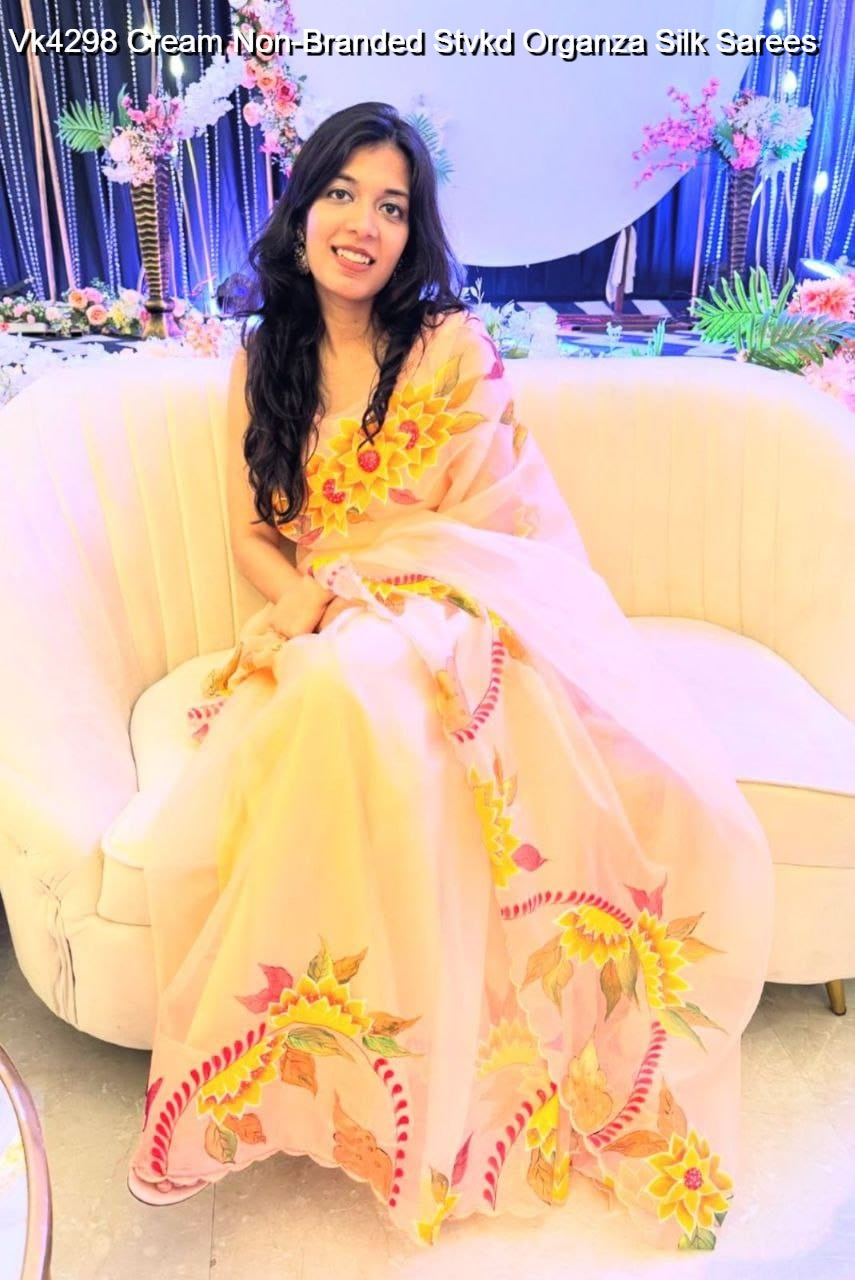 Vk4298 Cream Non-Branded Stvkd Organza Silk Sarees