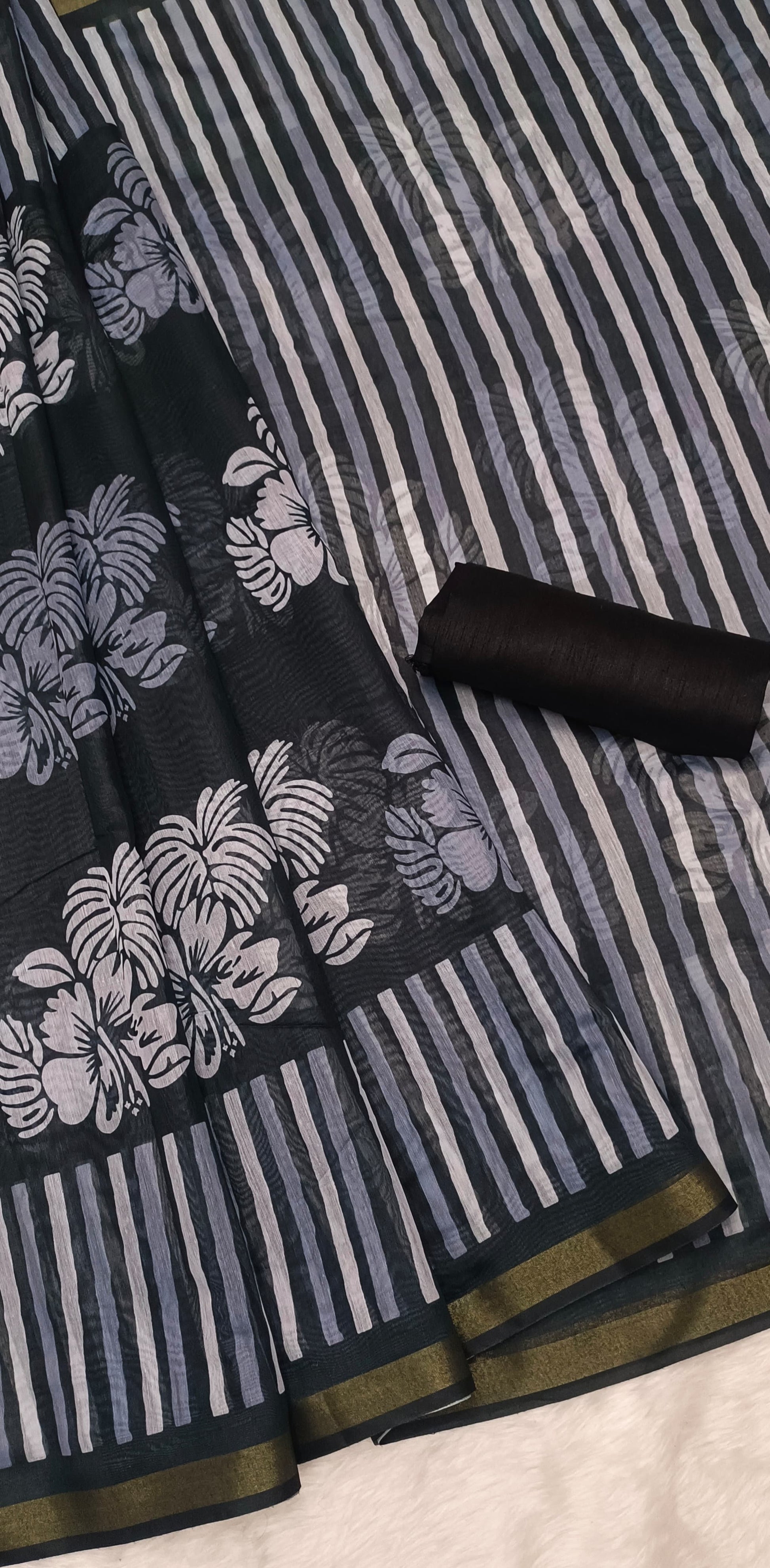 - Fabric Detail: Saree : Chanderi Cotton With Gold Zari Border Digital Print, Blouse : Banglori Satin , ,