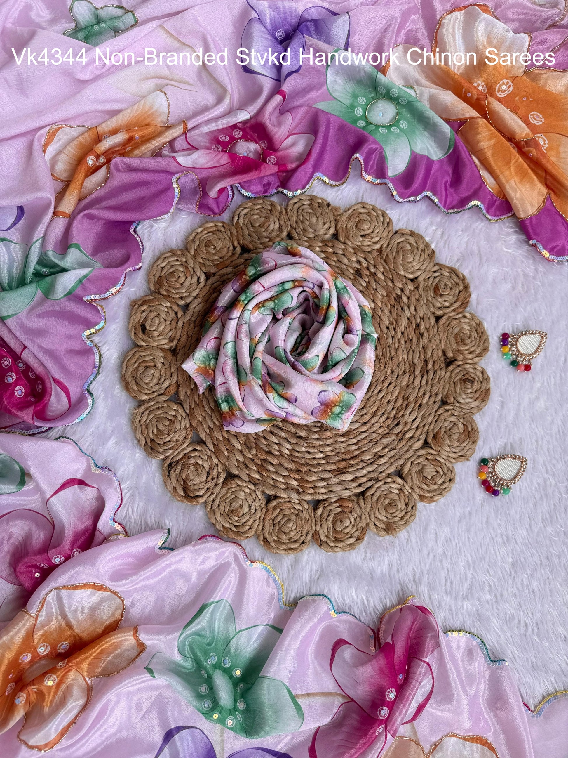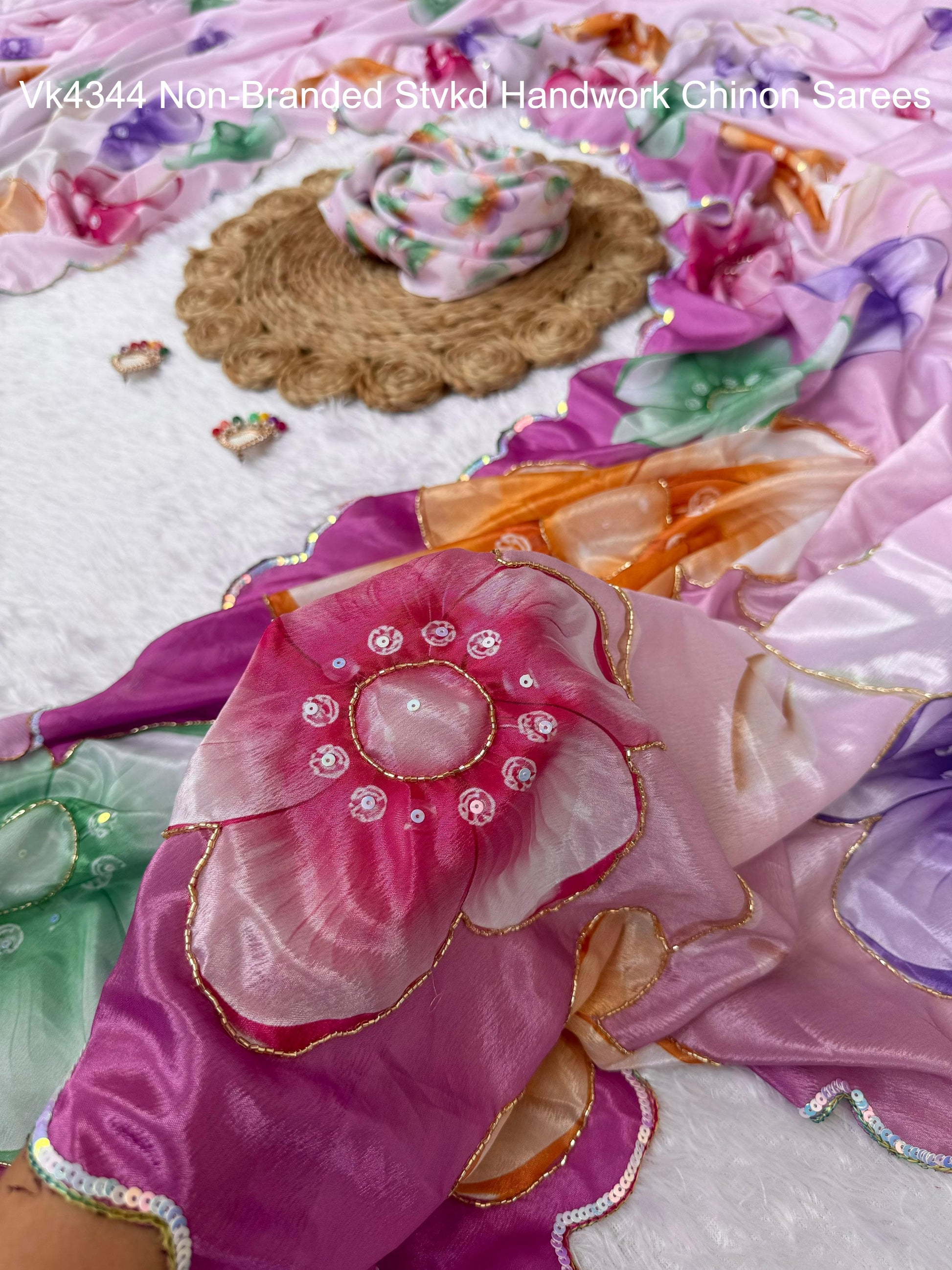 Vk4344 Non-Branded Stvkd Handwork Chinon Sarees
