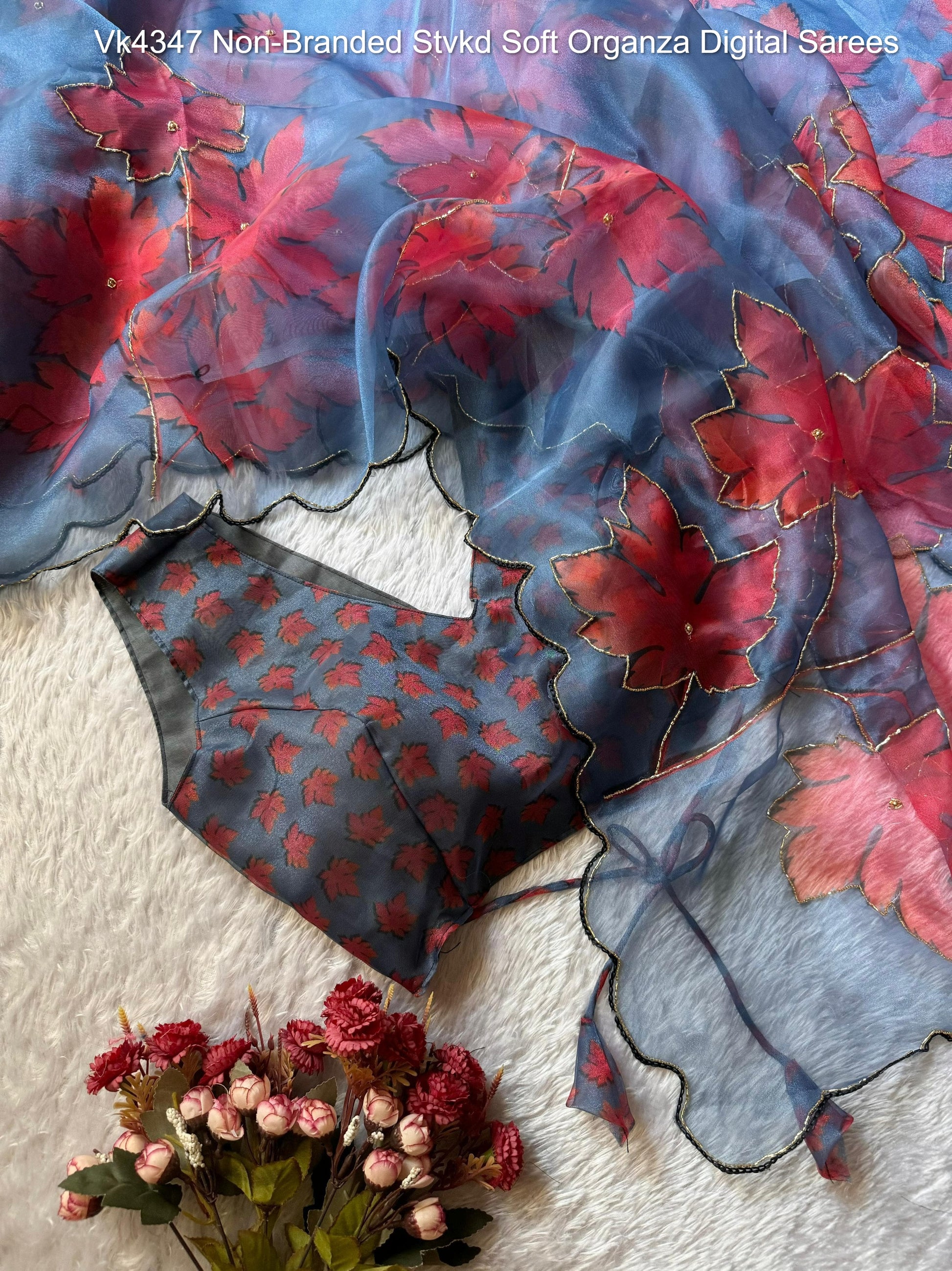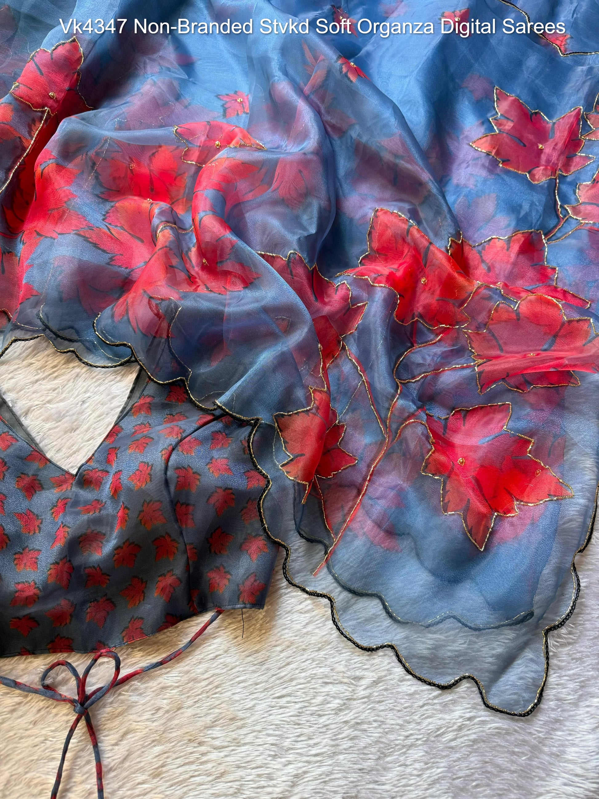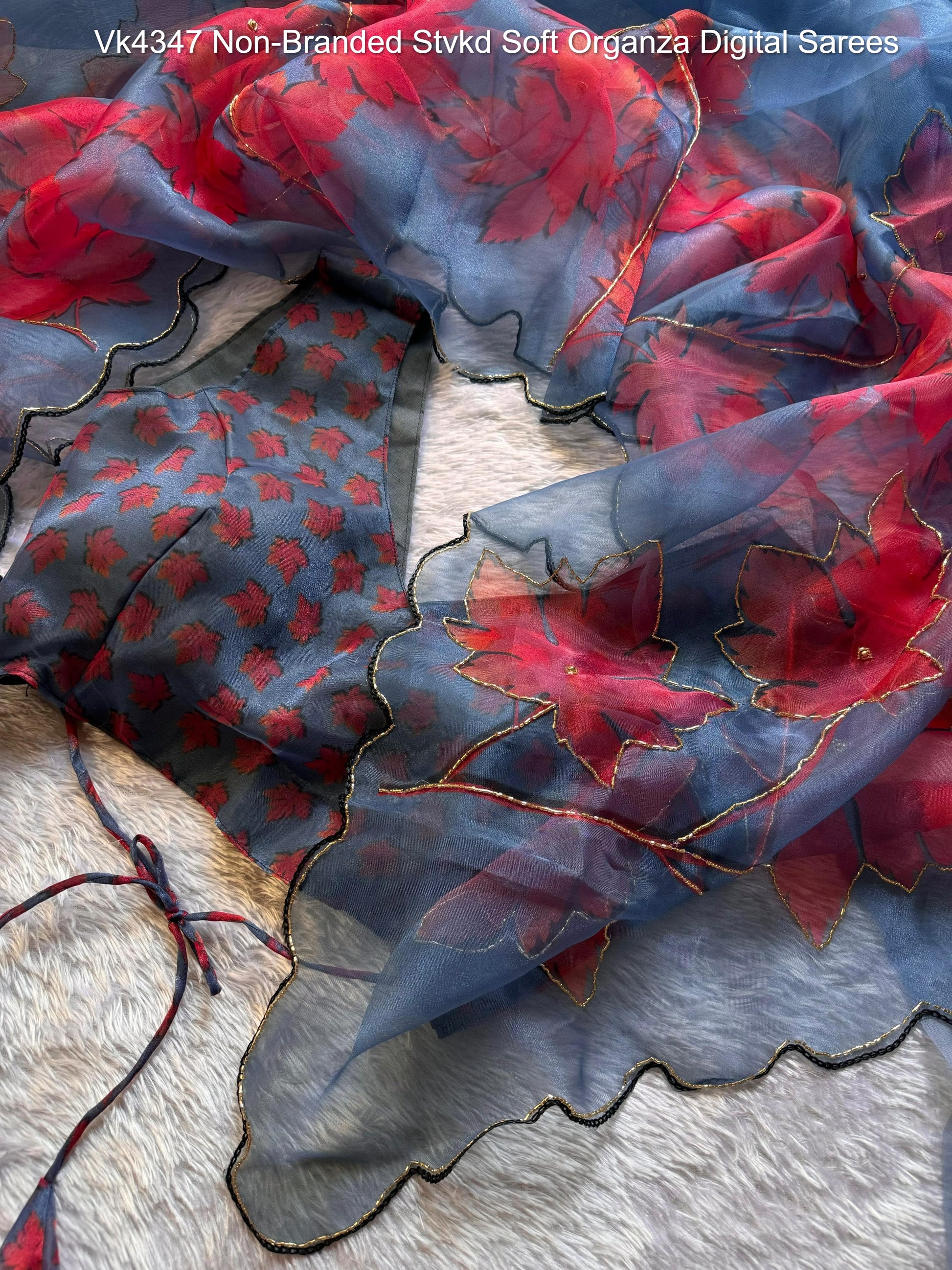 Vk4347 Non-Branded Stvkd Soft Organza Digital Sarees