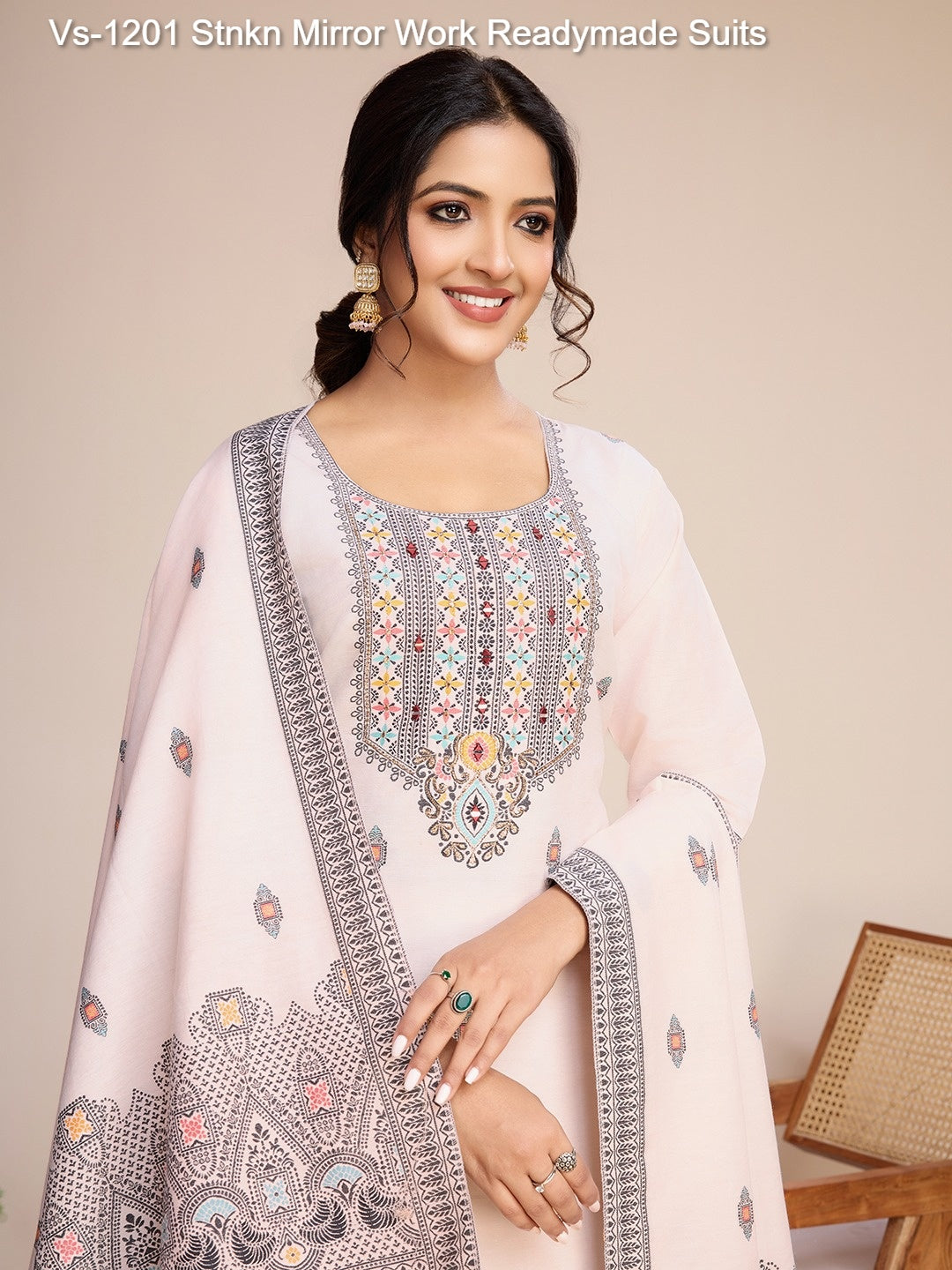 Vs-1201 Stnkn Mirror Work Readymade Suits