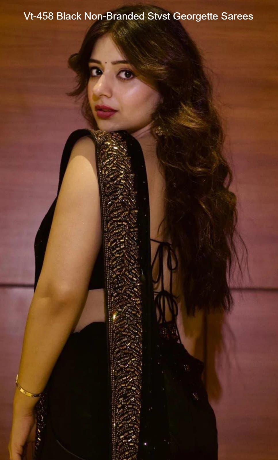 Vt-458 Black Non-Branded Stvst Georgette Sarees