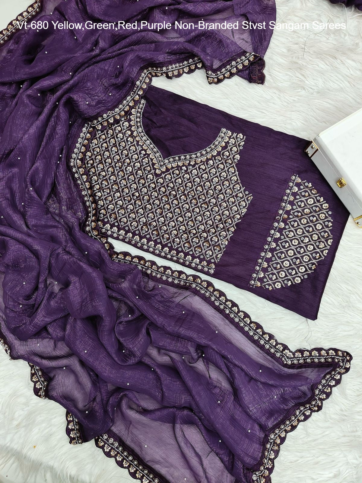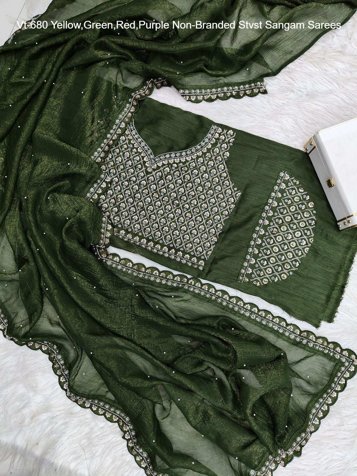 - Vt-680 Yellow,Green,Red,Purple Non-Branded Stvst Sangam Sarees Dealer Ahmedabad Surat Wholesale Gujarat India Lowest Price Best Quality Buy Purchase Shipping Kurta Salwaar Kameez Also free Cash on delivery