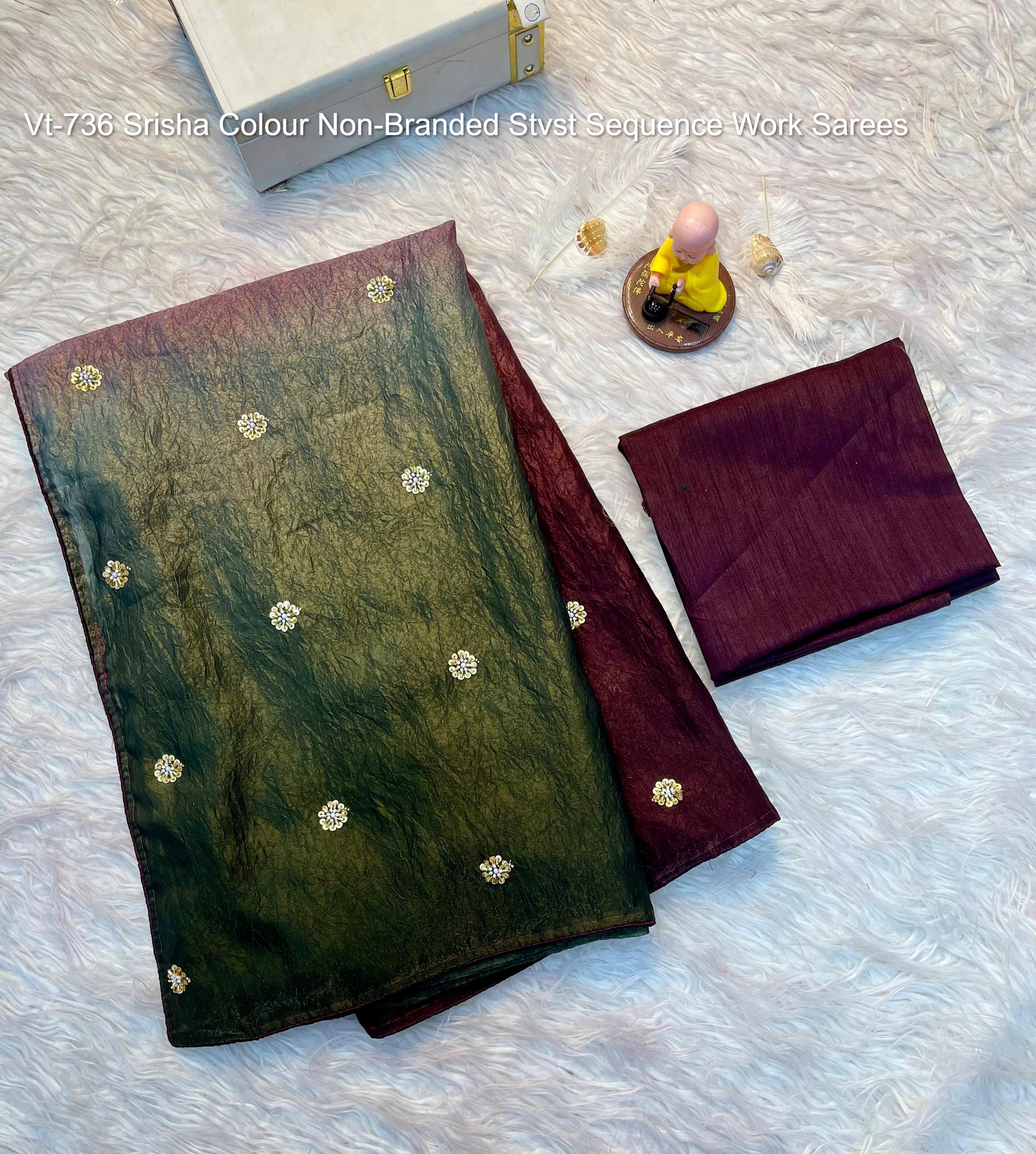 Vt-736 Srisha Colour Non-Branded Stvst Sequence Work Sarees