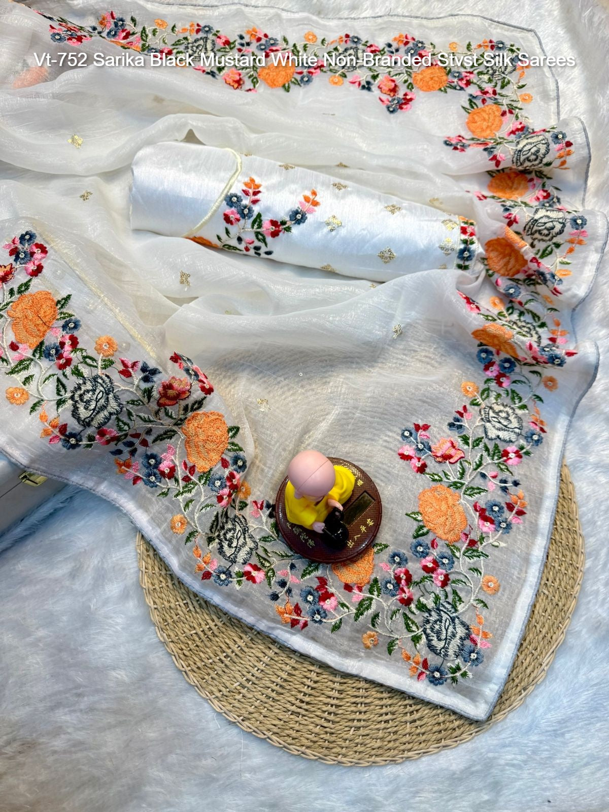 Vt-752 Sarika Black Mustard White Non-Branded Stvst Silk Sarees