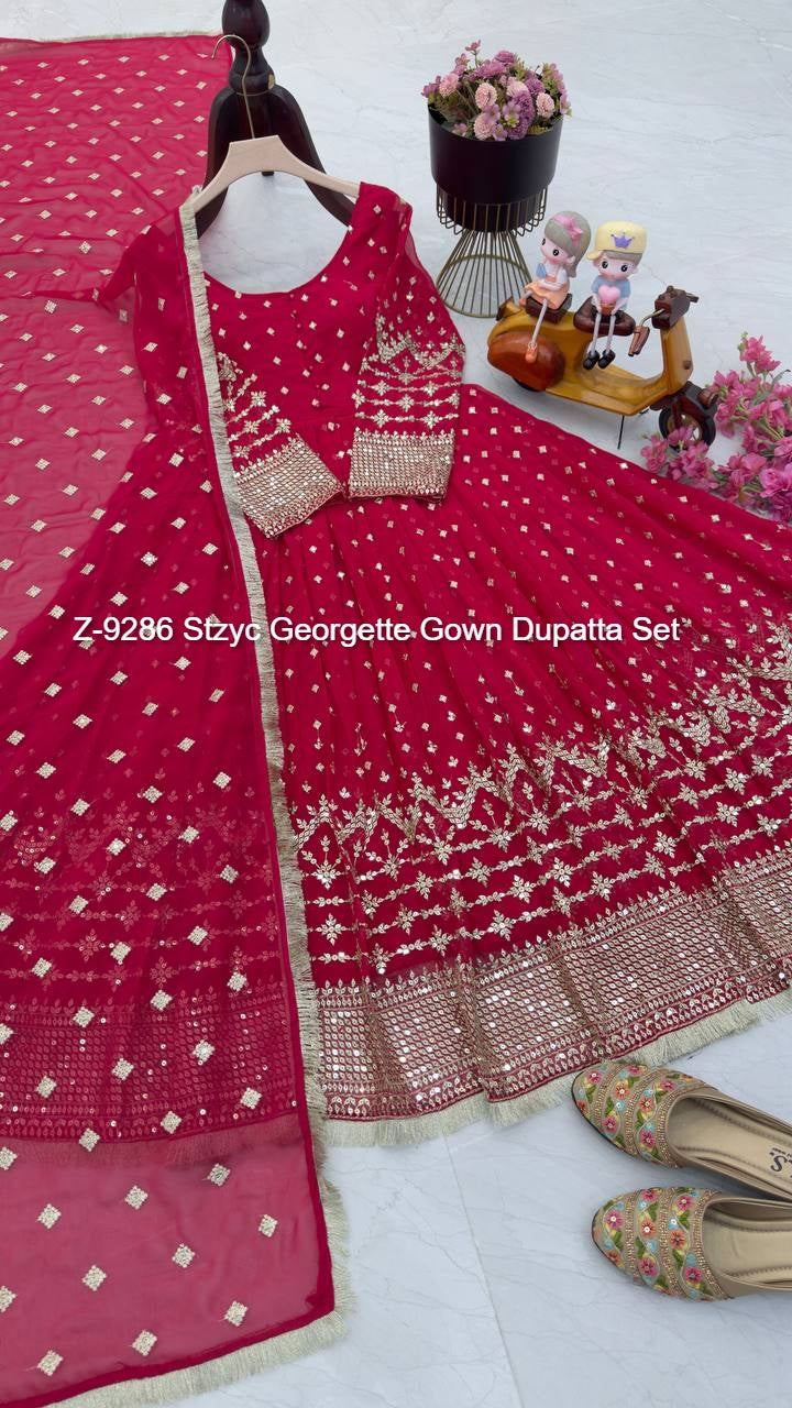 - Z-9286 Stzyc Georgette Gown Dupatta Set Dealer Ahmedabad Surat Wholesale Gujarat India Lowest Price Best Quality Buy Purchase Shipping Kurta Salwaar Kameez Also free Cash on delivery