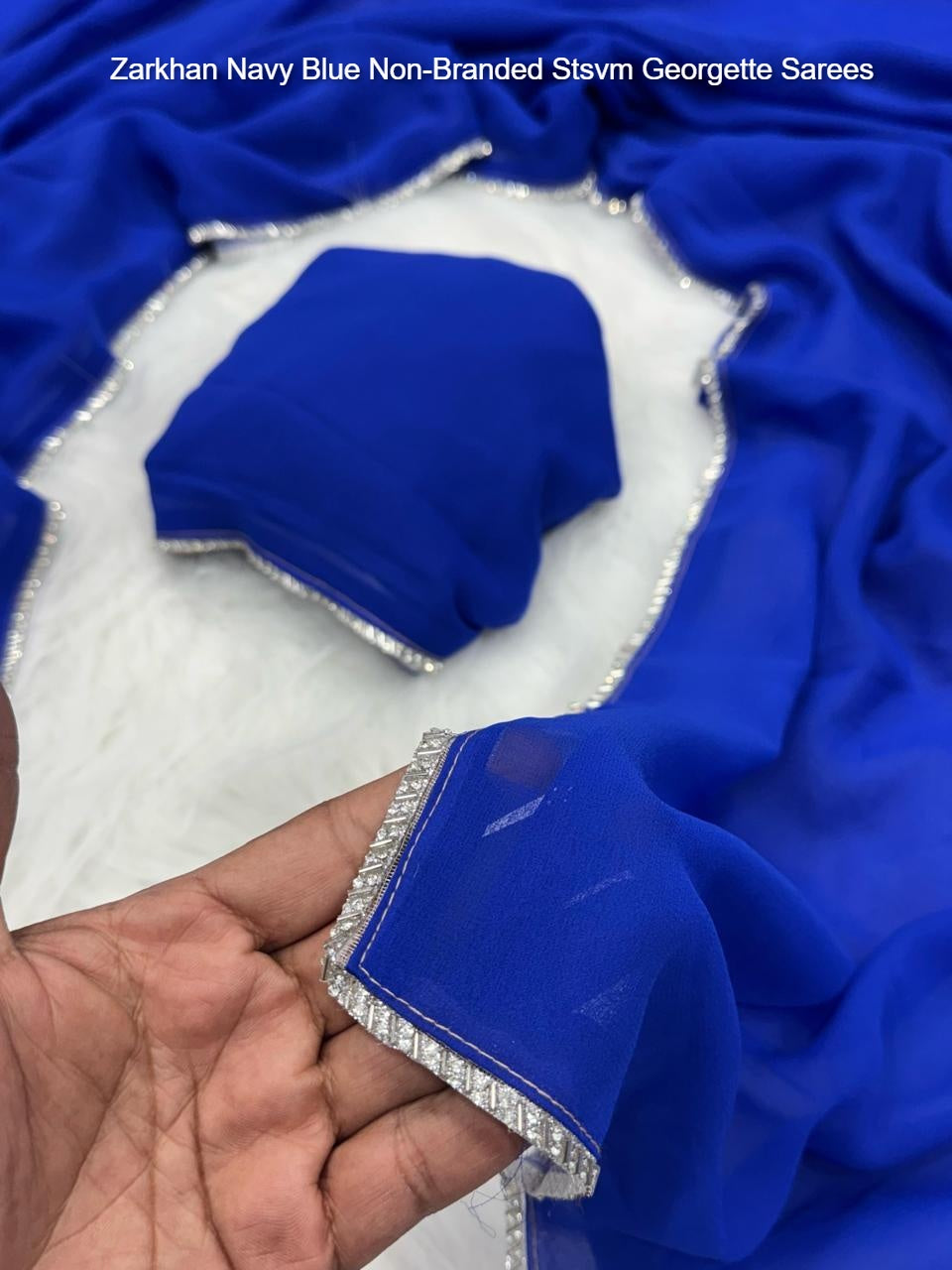 Zarkhan Navy Blue Non-Branded Stsvm Georgette Sarees