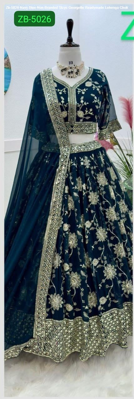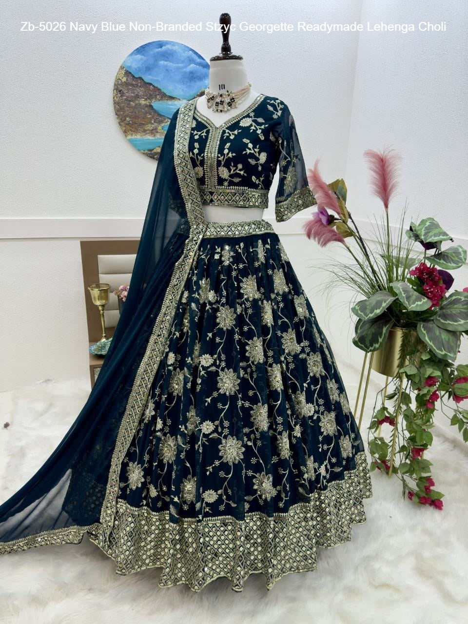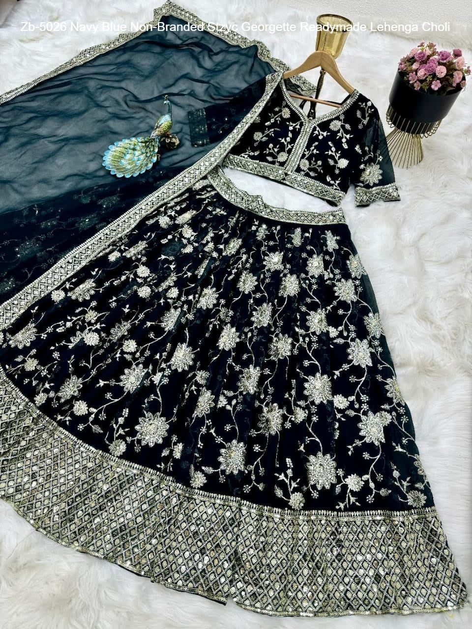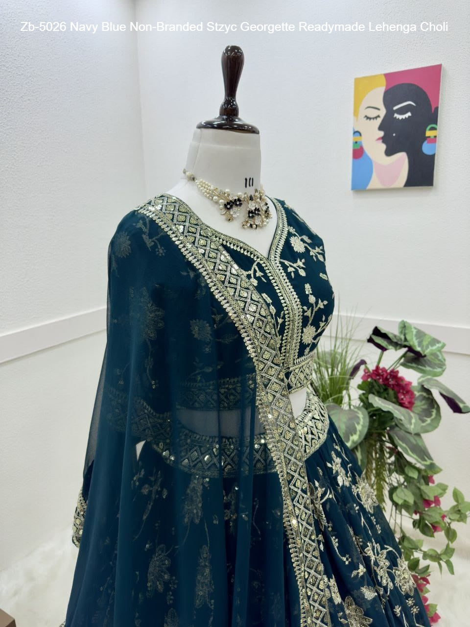 Zb-5026 Navy Blue Non-Branded Stzyc Georgette Readymade Lehenga Choli