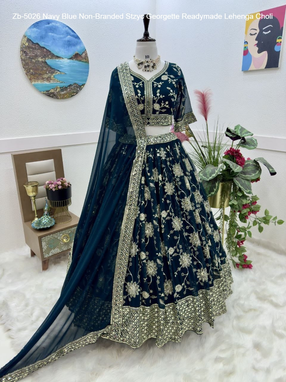 - Zb-5026 Navy Blue Non-Branded Stzyc Georgette Readymade Lehenga Choli Dealer Ahmedabad Surat Wholesale Gujarat India Lowest Price Best Quality Buy Purchase Shipping Kurta Salwaar Kameez Also free Cash on delivery