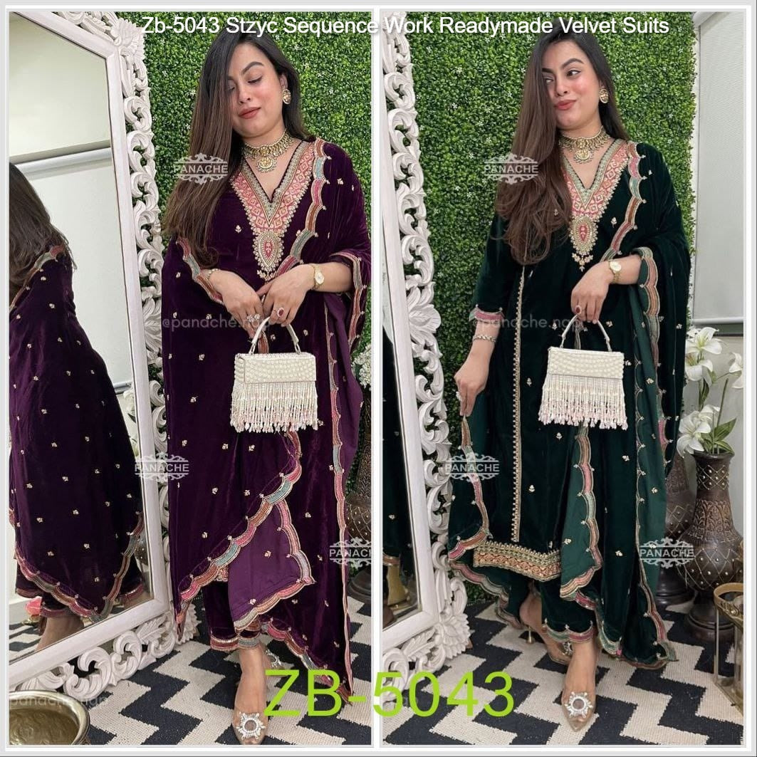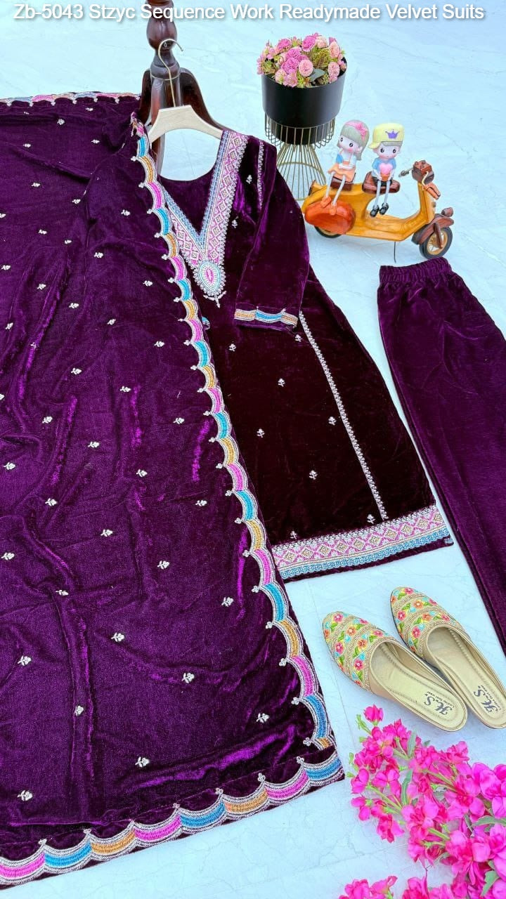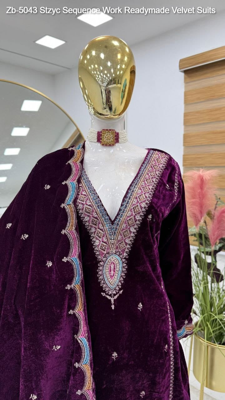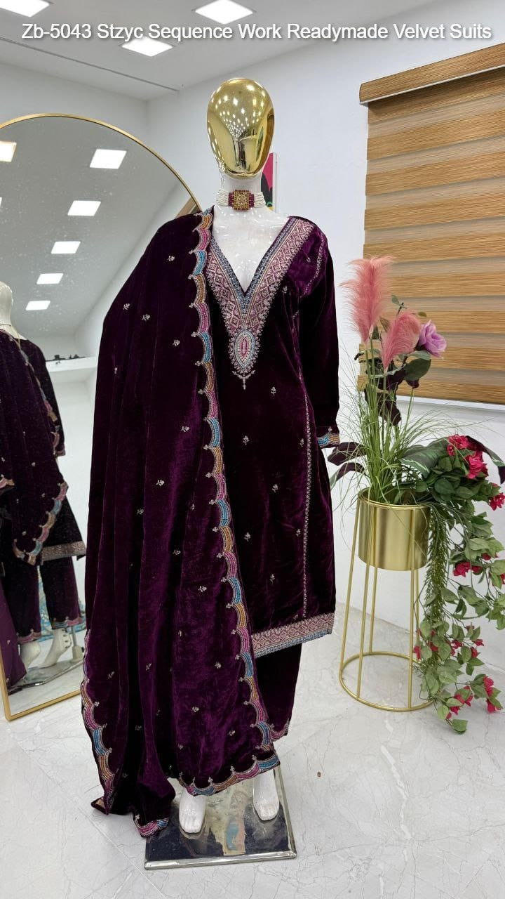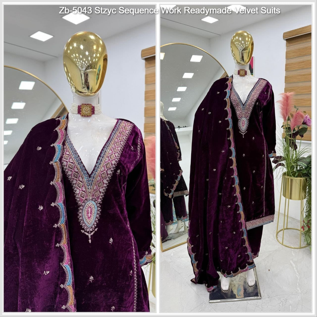 - Zb-5043 Stzyc Sequence Work Readymade Velvet Suits Dealer Ahmedabad Surat Wholesale Gujarat India Lowest Price Best Quality Buy Purchase Shipping Kurta Salwaar Kameez Also free Cash on delivery