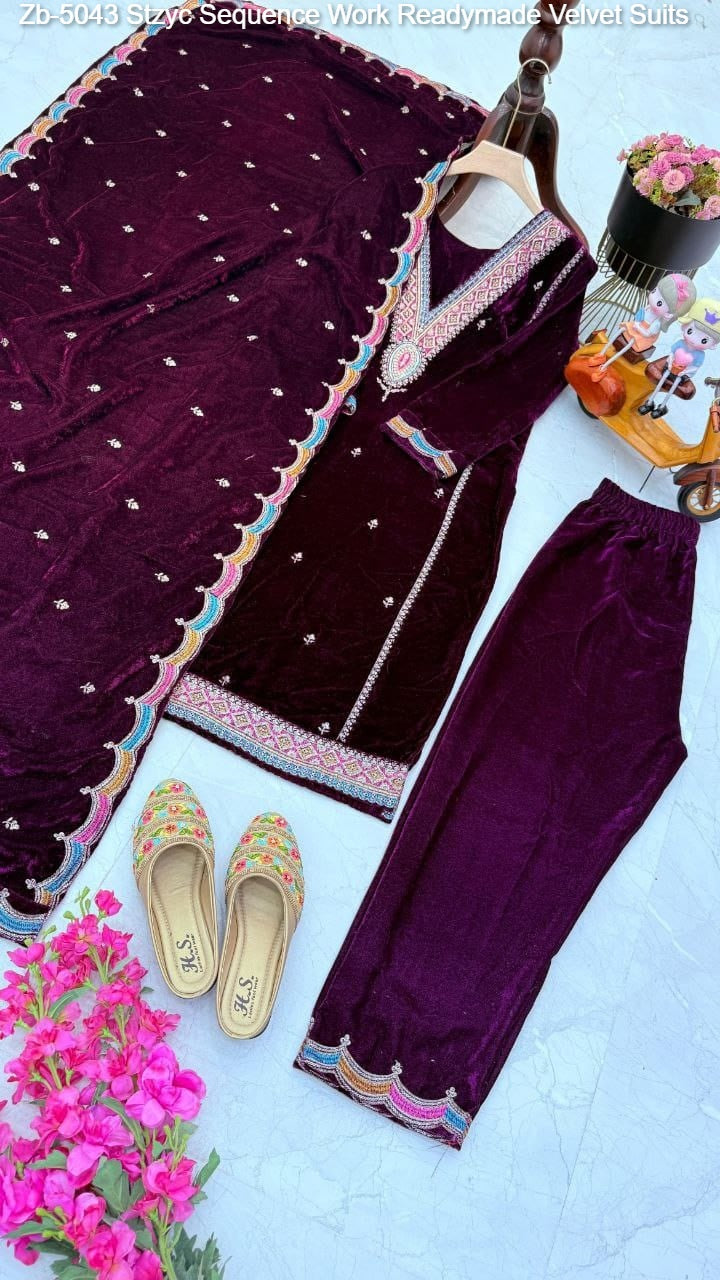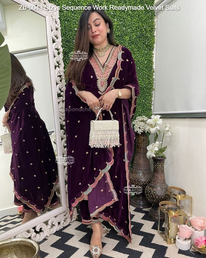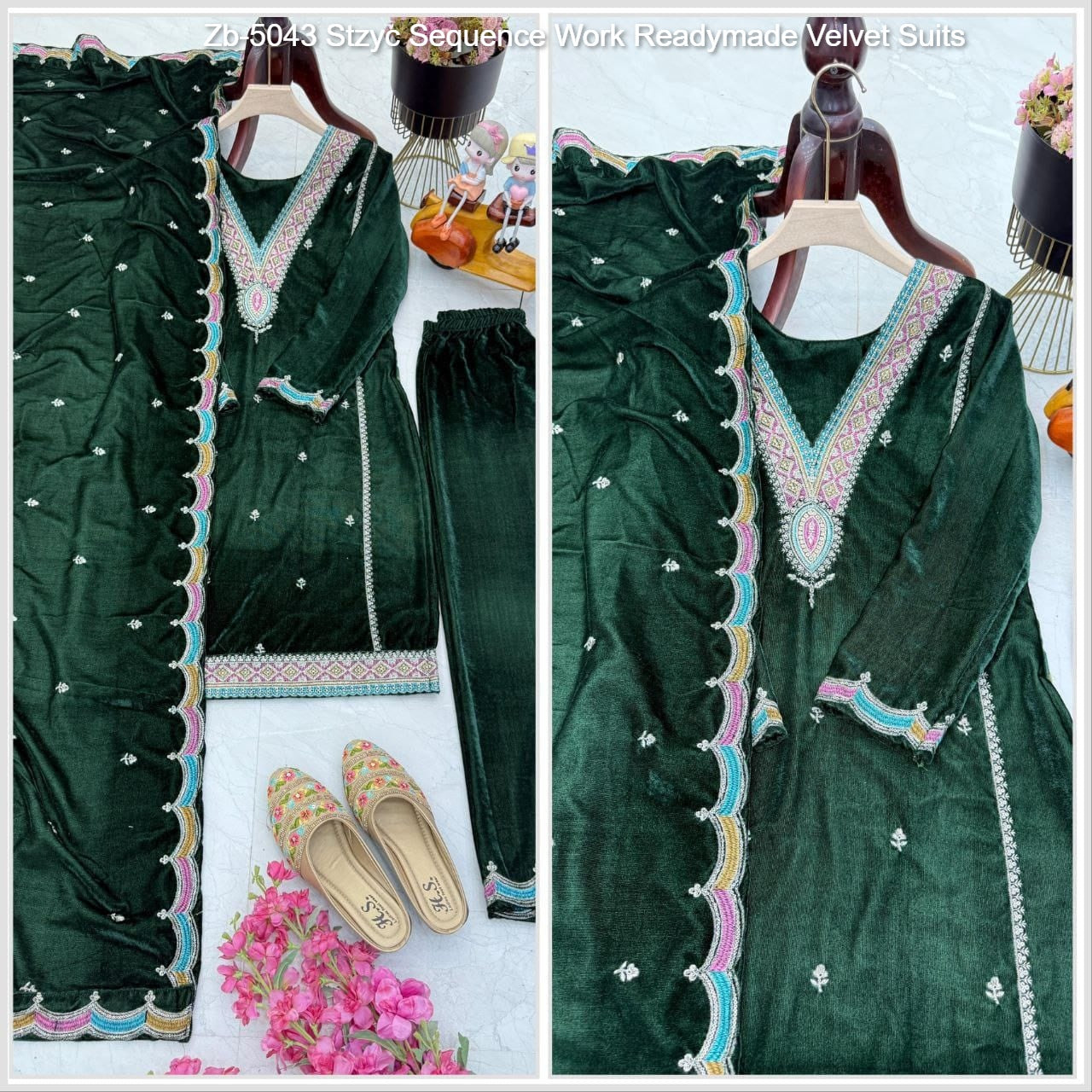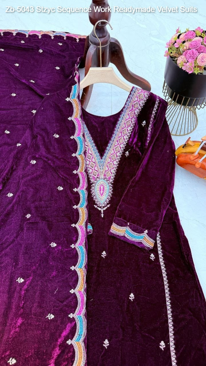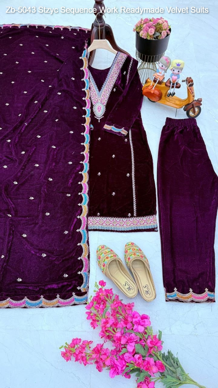 - Zb-5043 Stzyc Sequence Work Readymade Velvet Suits Dealer Ahmedabad Surat Wholesale Gujarat India Lowest Price Best Quality Buy Purchase Shipping Kurta Salwaar Kameez Also free Cash on delivery