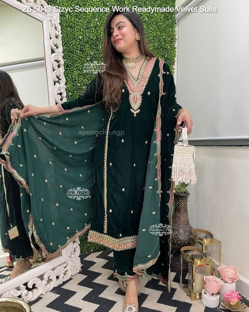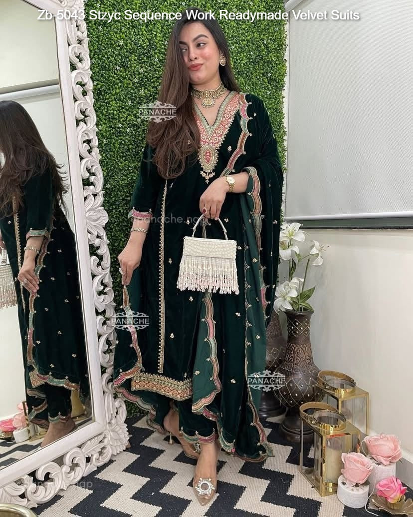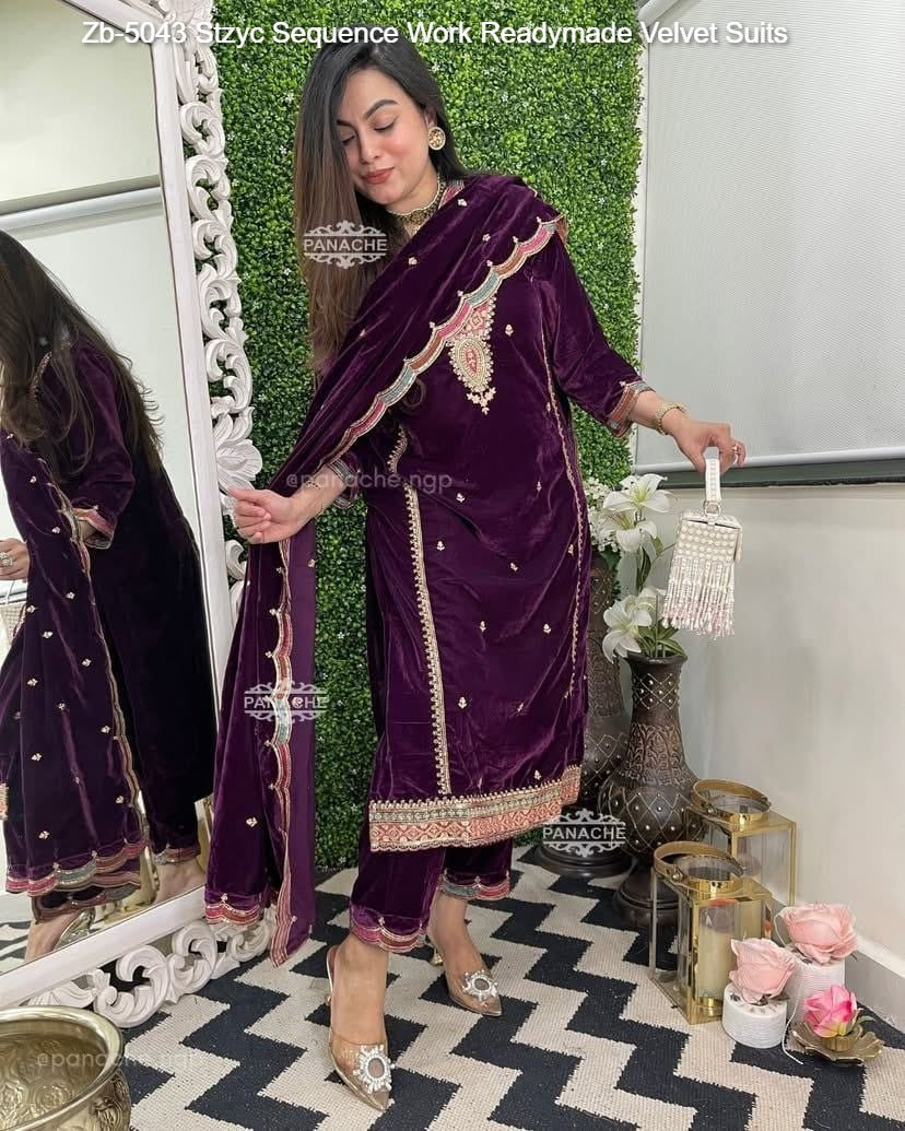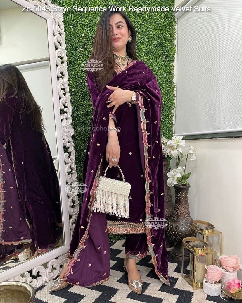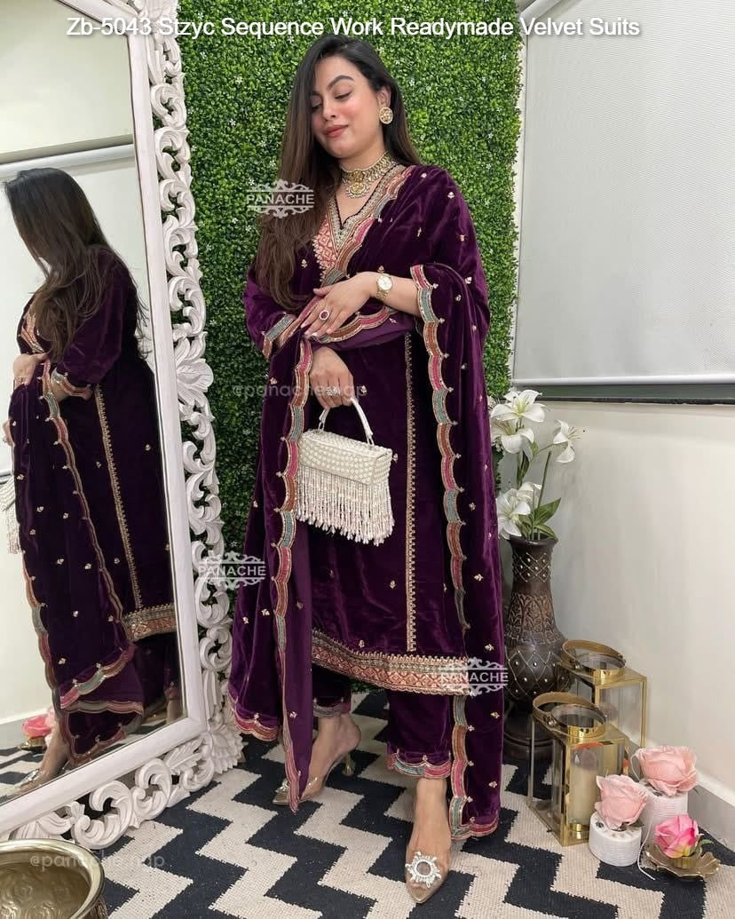 - Zb-5043 Stzyc Sequence Work Readymade Velvet Suits Dealer Ahmedabad Surat Wholesale Gujarat India Lowest Price Best Quality Buy Purchase Shipping Kurta Salwaar Kameez Also free Cash on delivery