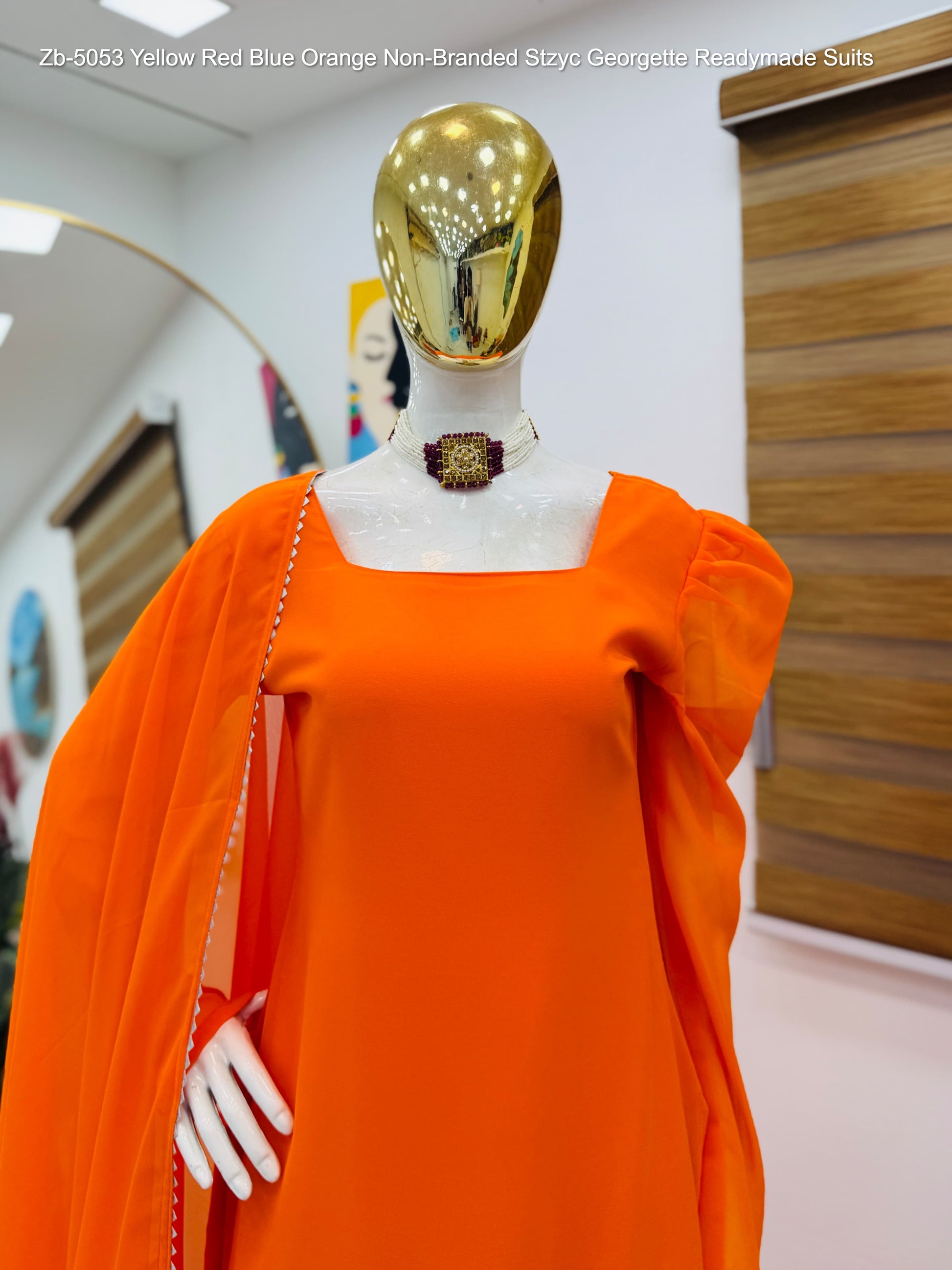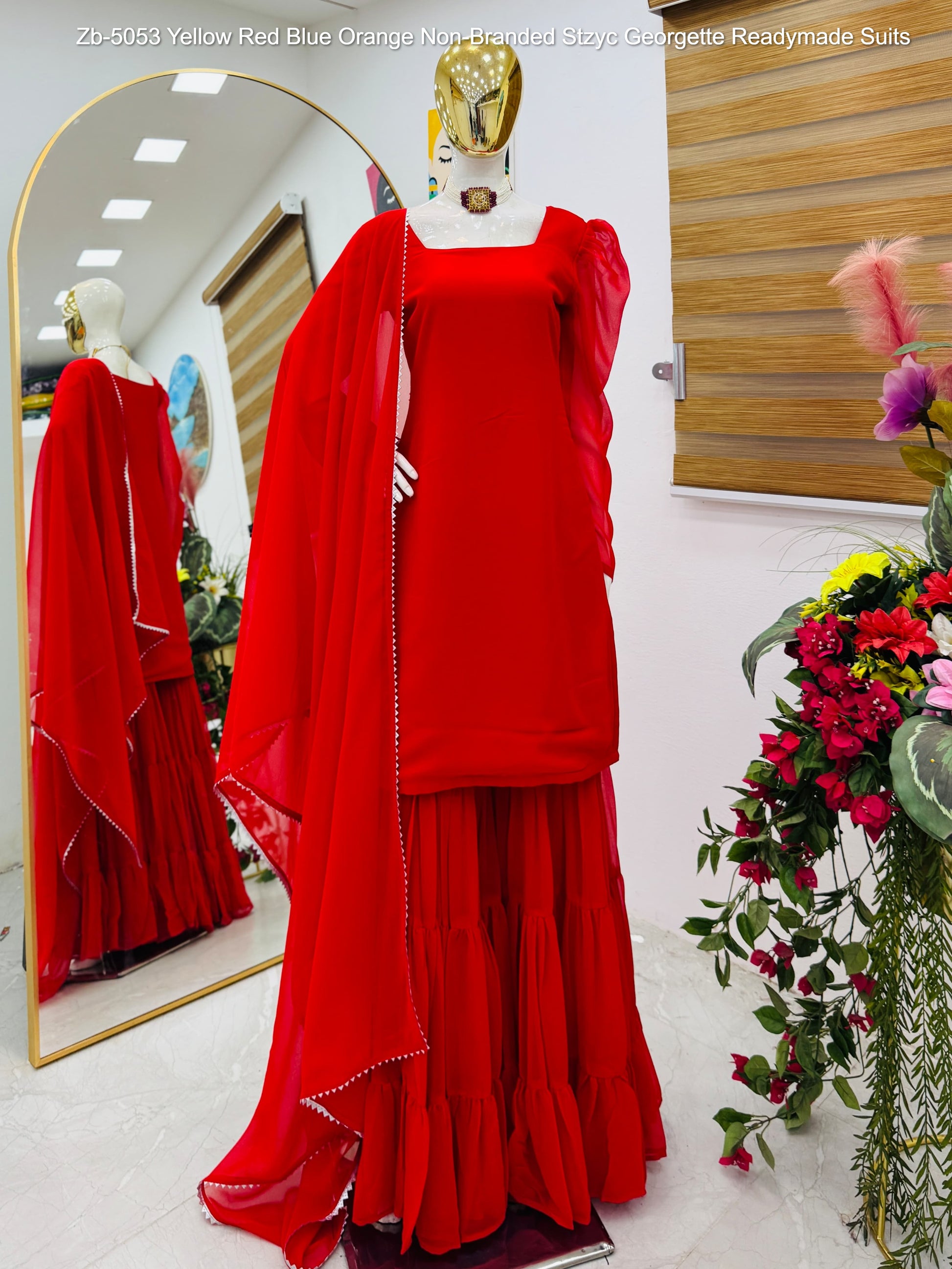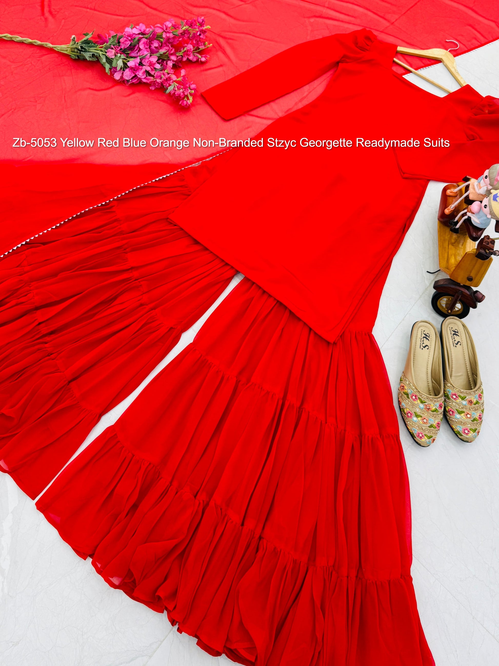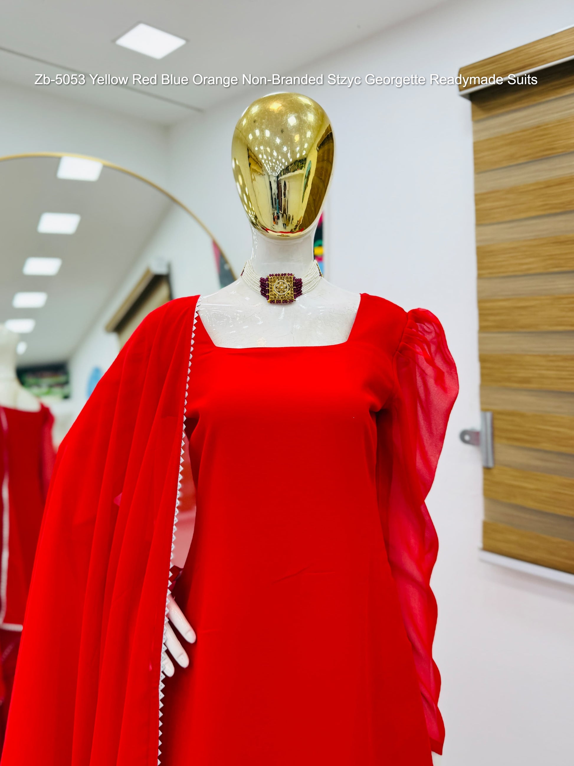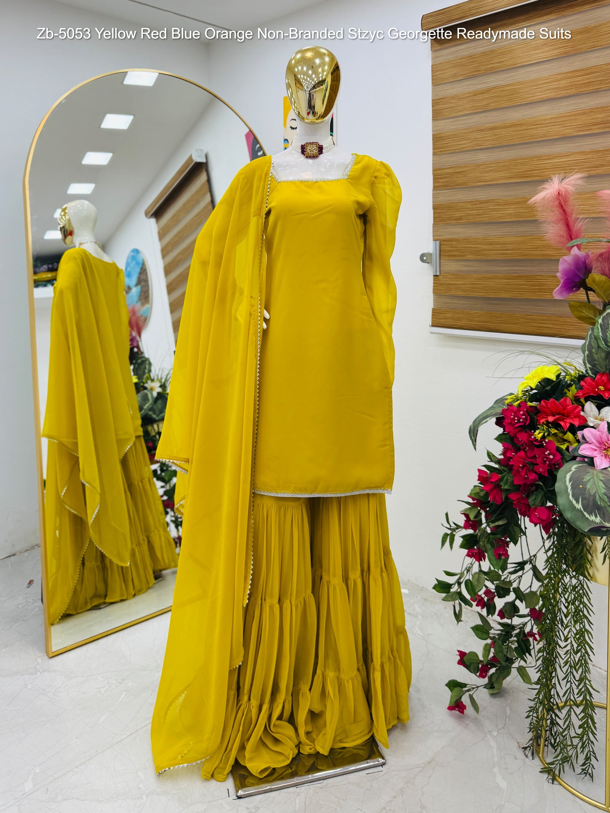 Zb-5053 Yellow Red Blue Orange Non-Branded Stzyc Georgette Readymade Suits