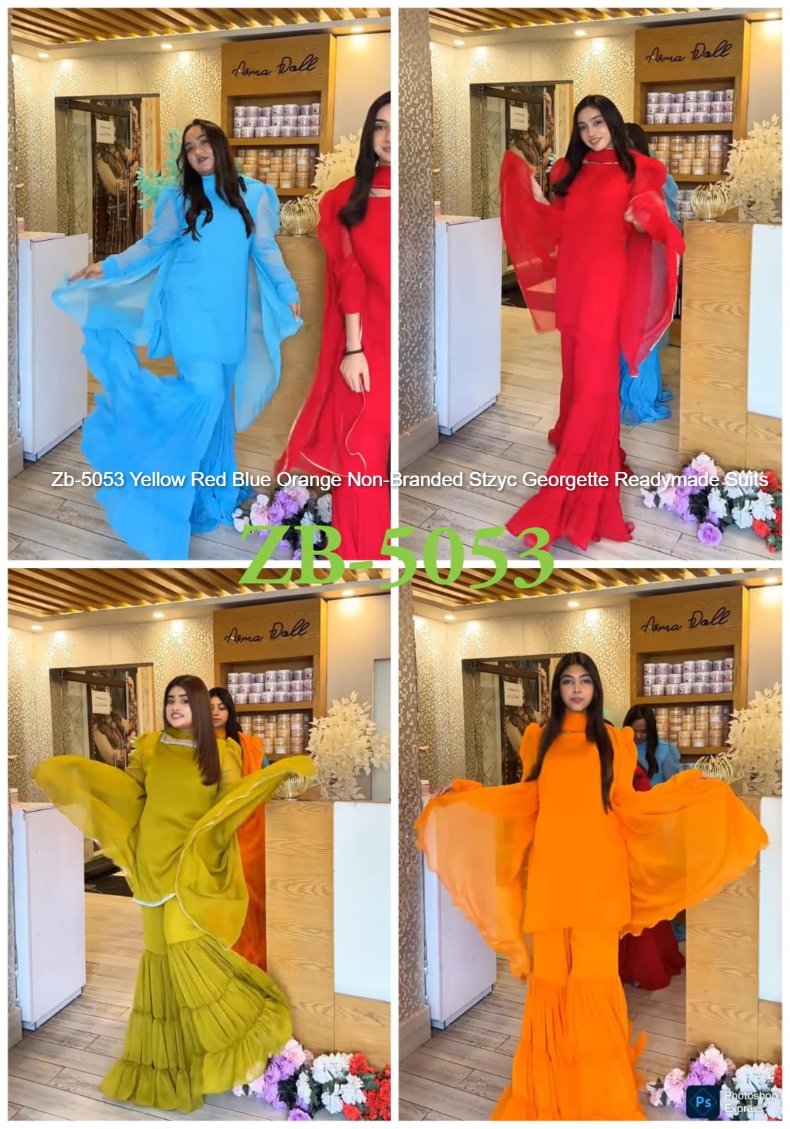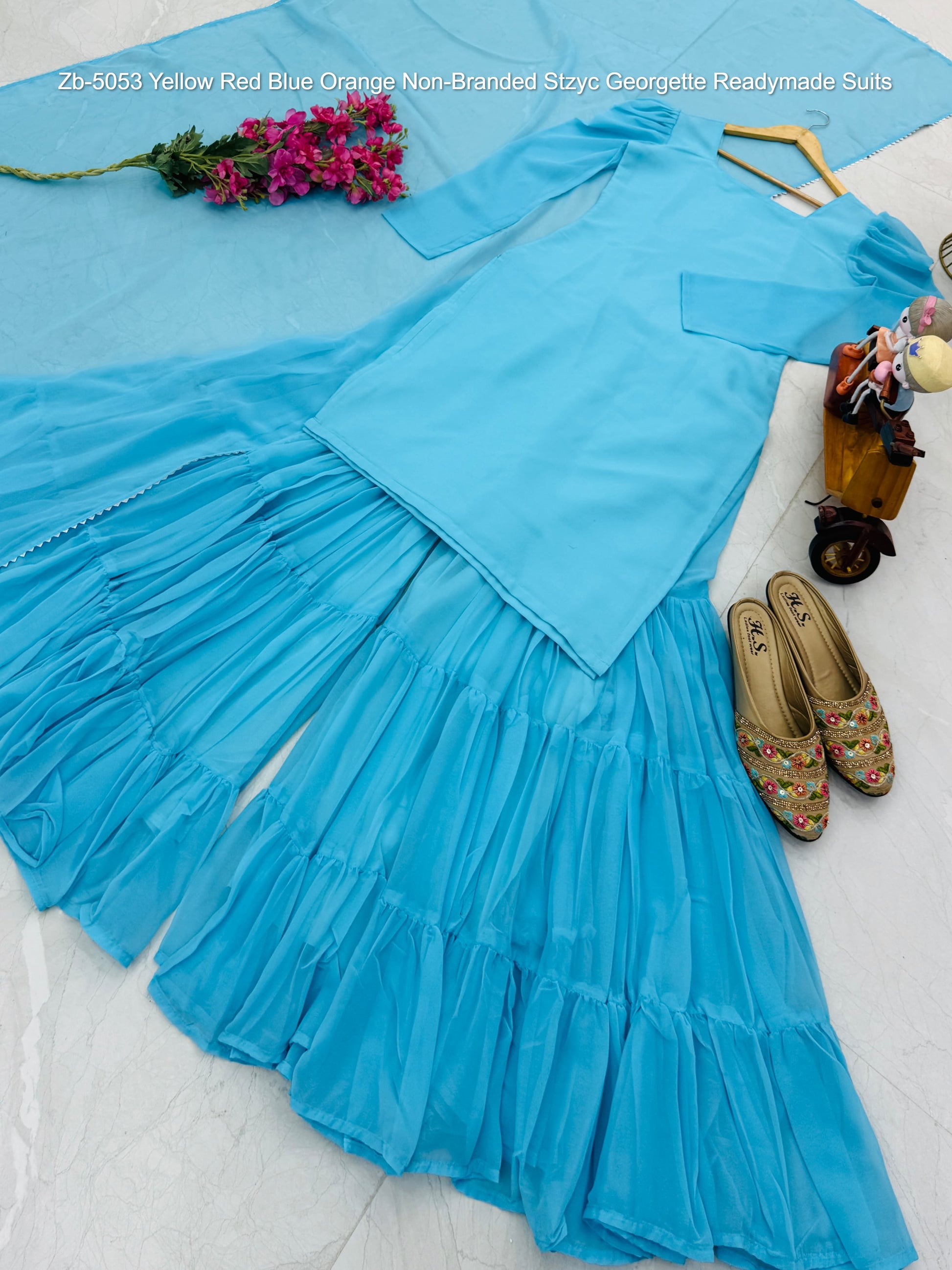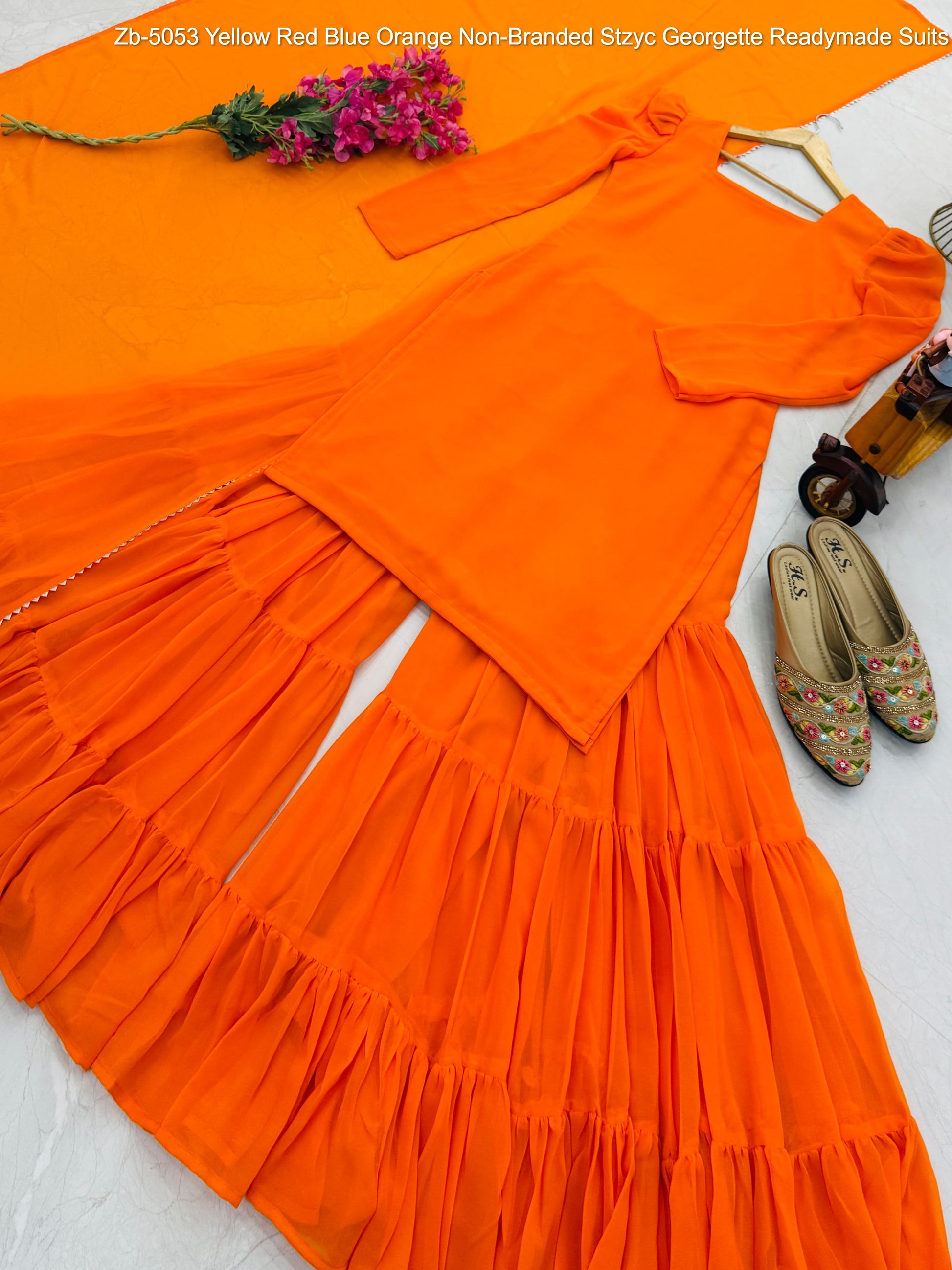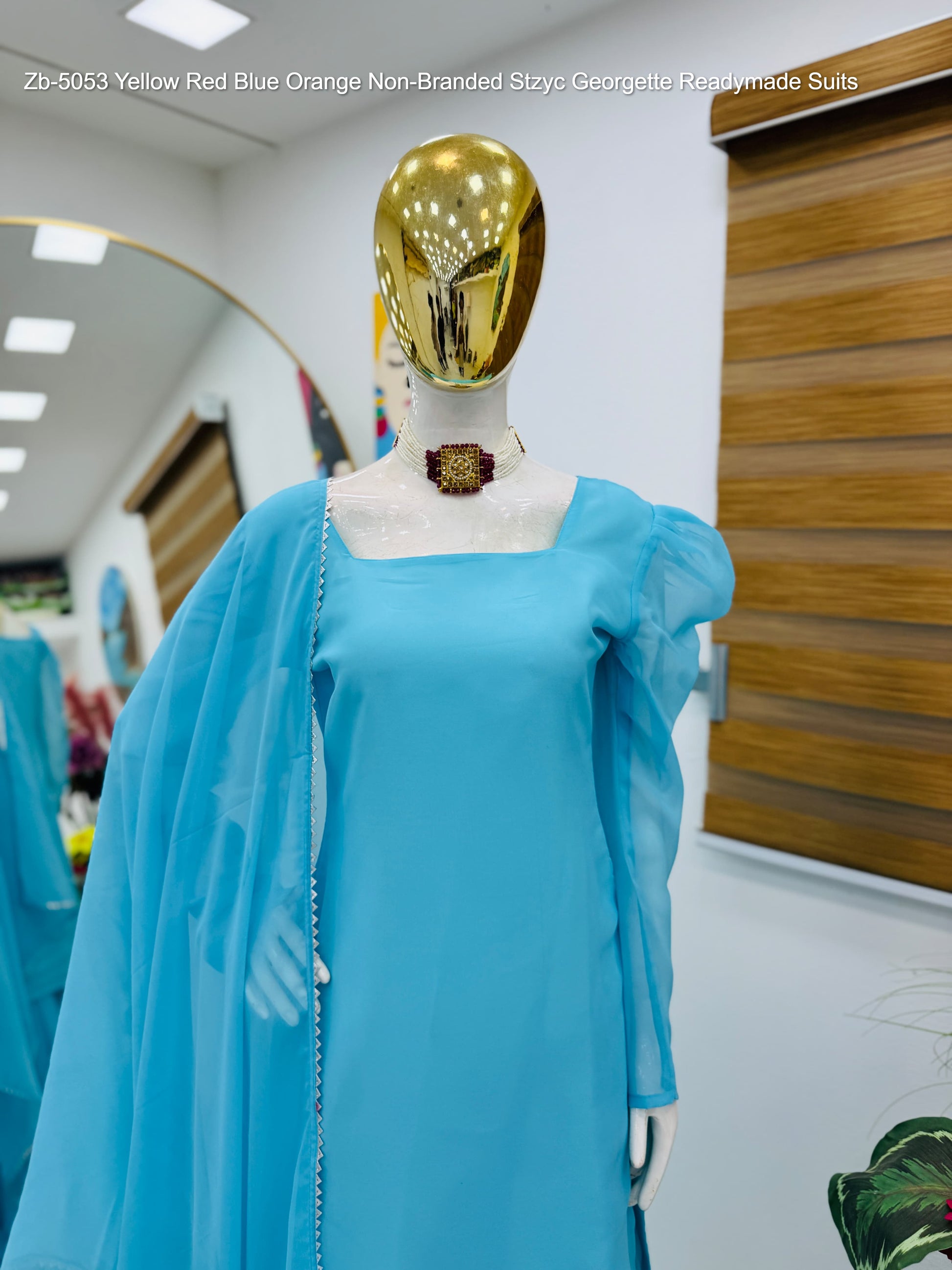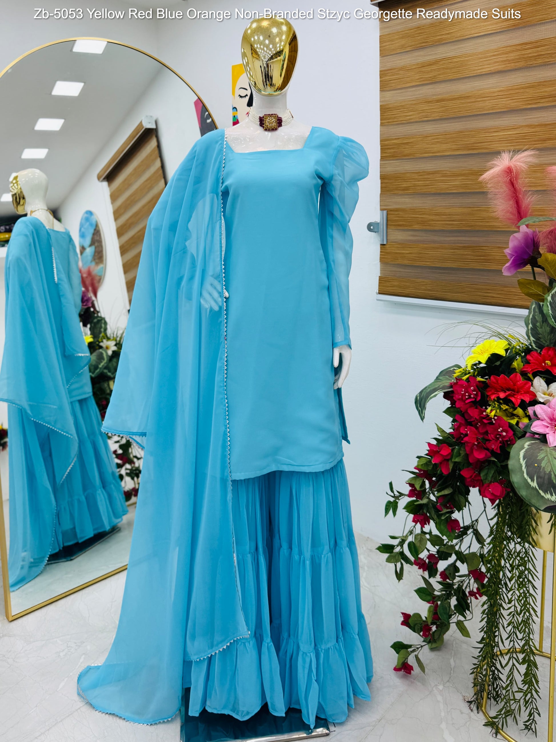 Zb-5053 Yellow Red Blue Orange Non-Branded Stzyc Georgette Readymade Suits