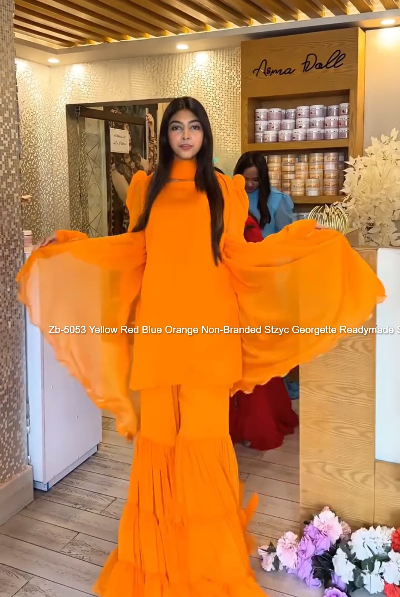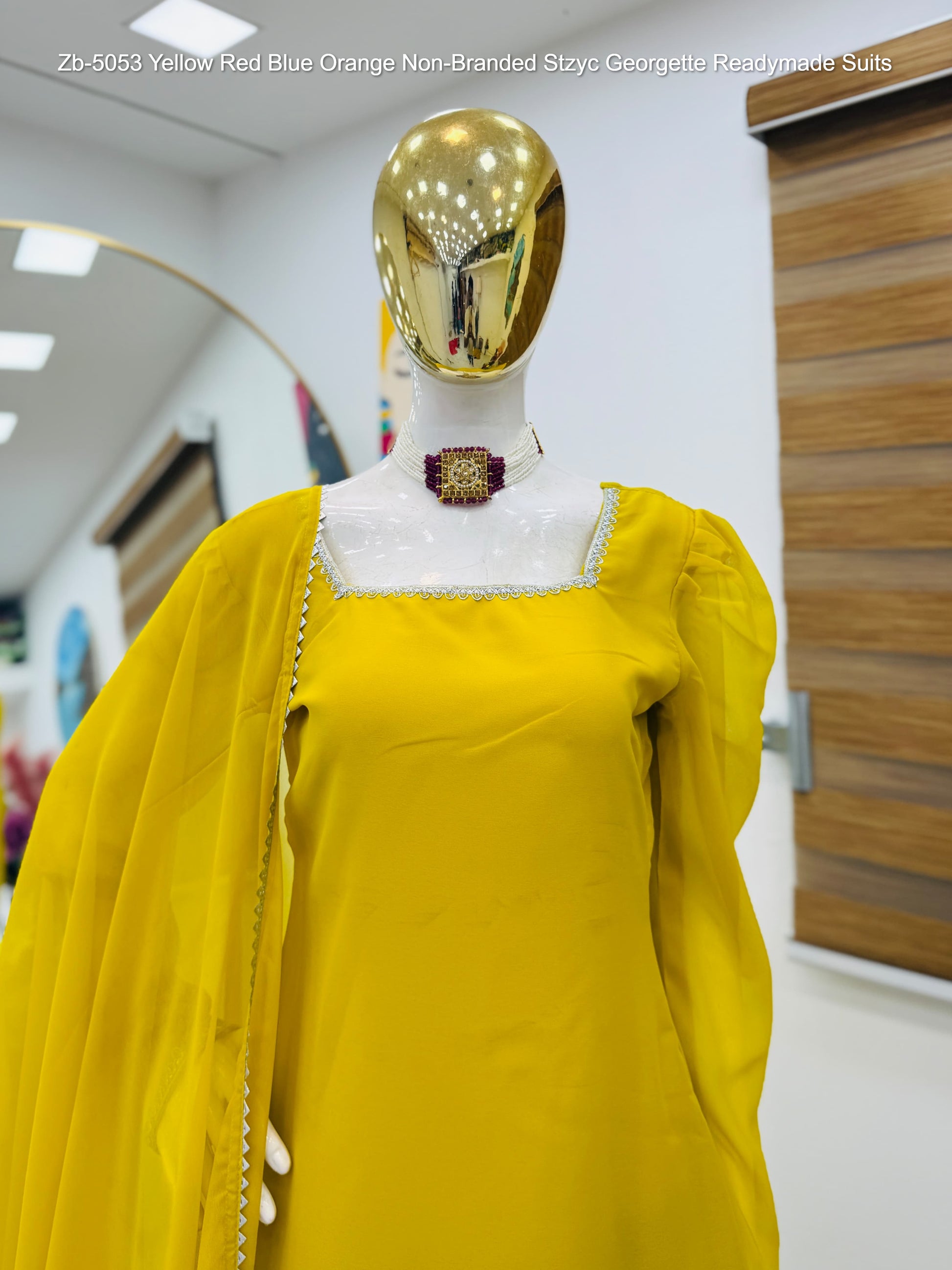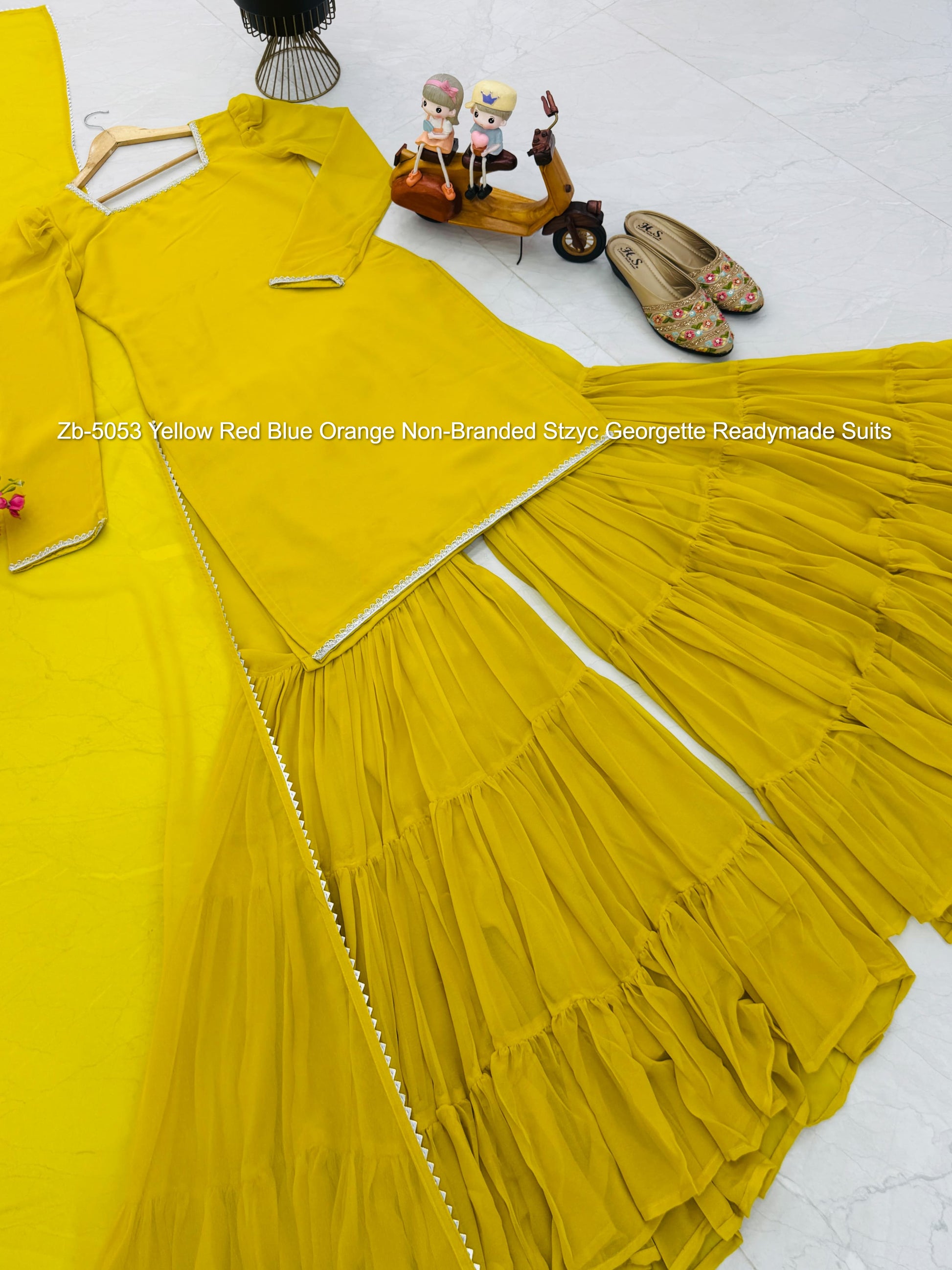 - Zb-5053 Yellow Red Blue Orange Non-Branded Stzyc Georgette Readymade Suits Dealer Ahmedabad Surat Wholesale Gujarat India Lowest Price Best Quality Buy Purchase Shipping Kurta Salwaar Kameez Also free Cash on delivery