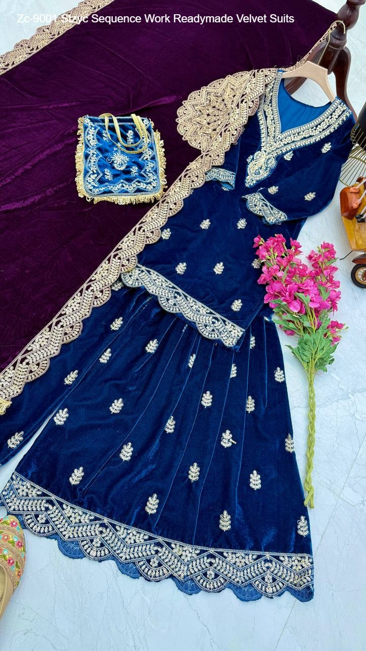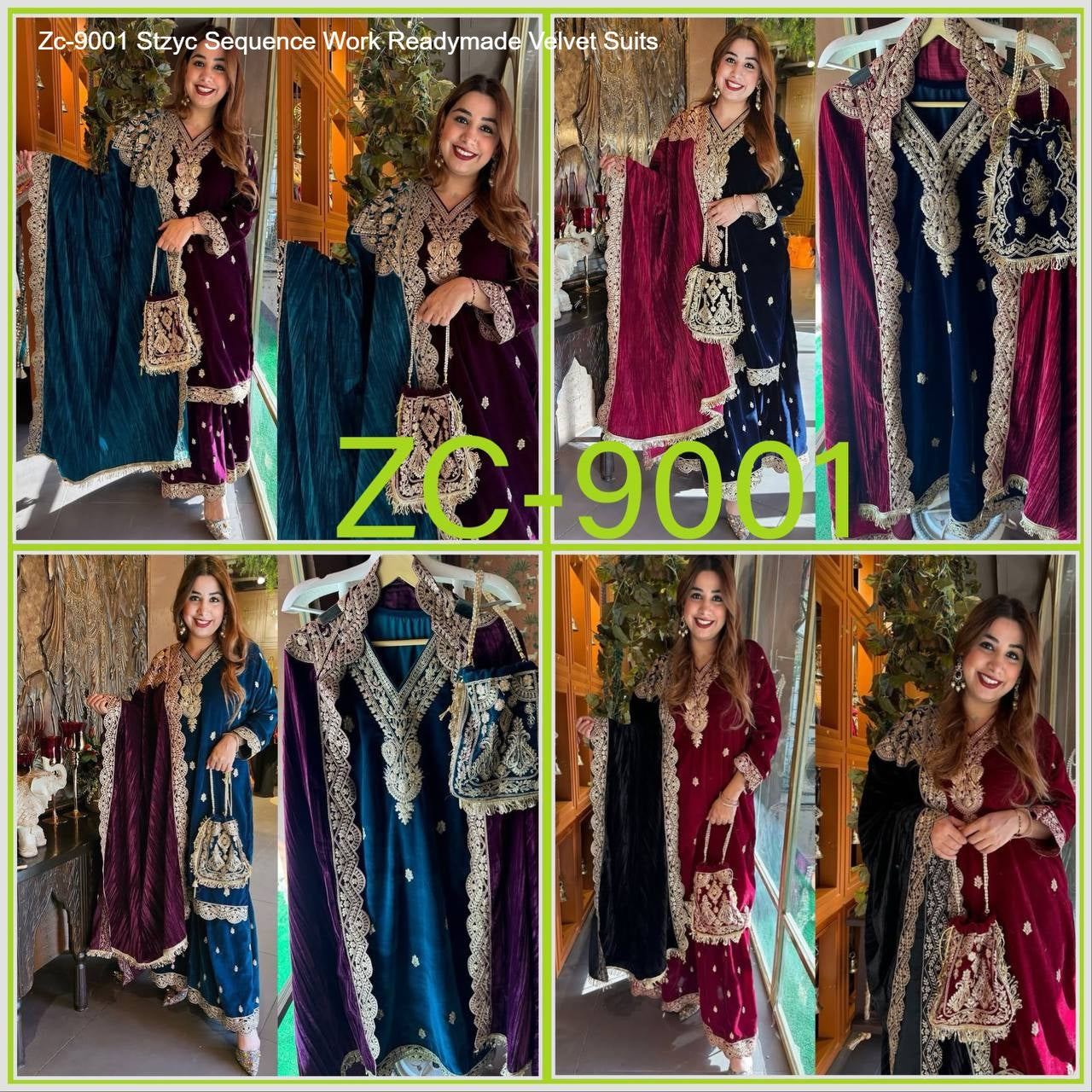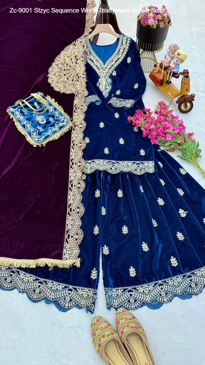 - Zc-9001 Stzyc Sequence Work Readymade Velvet Suits Dealer Ahmedabad Surat Wholesale Gujarat India Lowest Price Best Quality Buy Purchase Shipping Kurta Salwaar Kameez Also free Cash on delivery