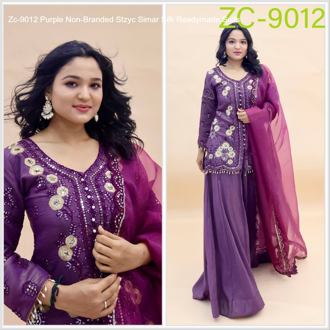 - Zc-9012 Purple Non-Branded Stzyc Simar Silk Readymade Suits Dealer Ahmedabad Surat Wholesale Gujarat India Lowest Price Best Quality Buy Purchase Shipping Kurta Salwaar Kameez Also free Cash on delivery