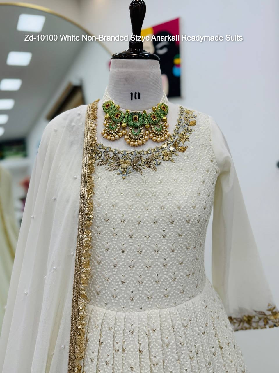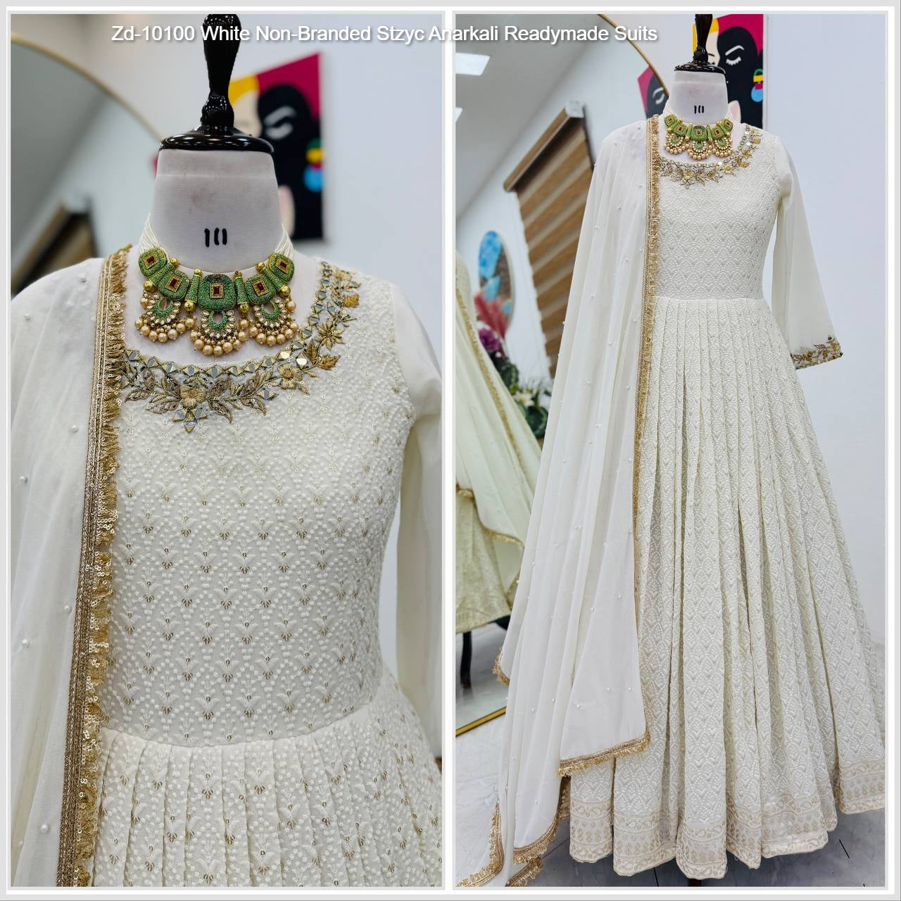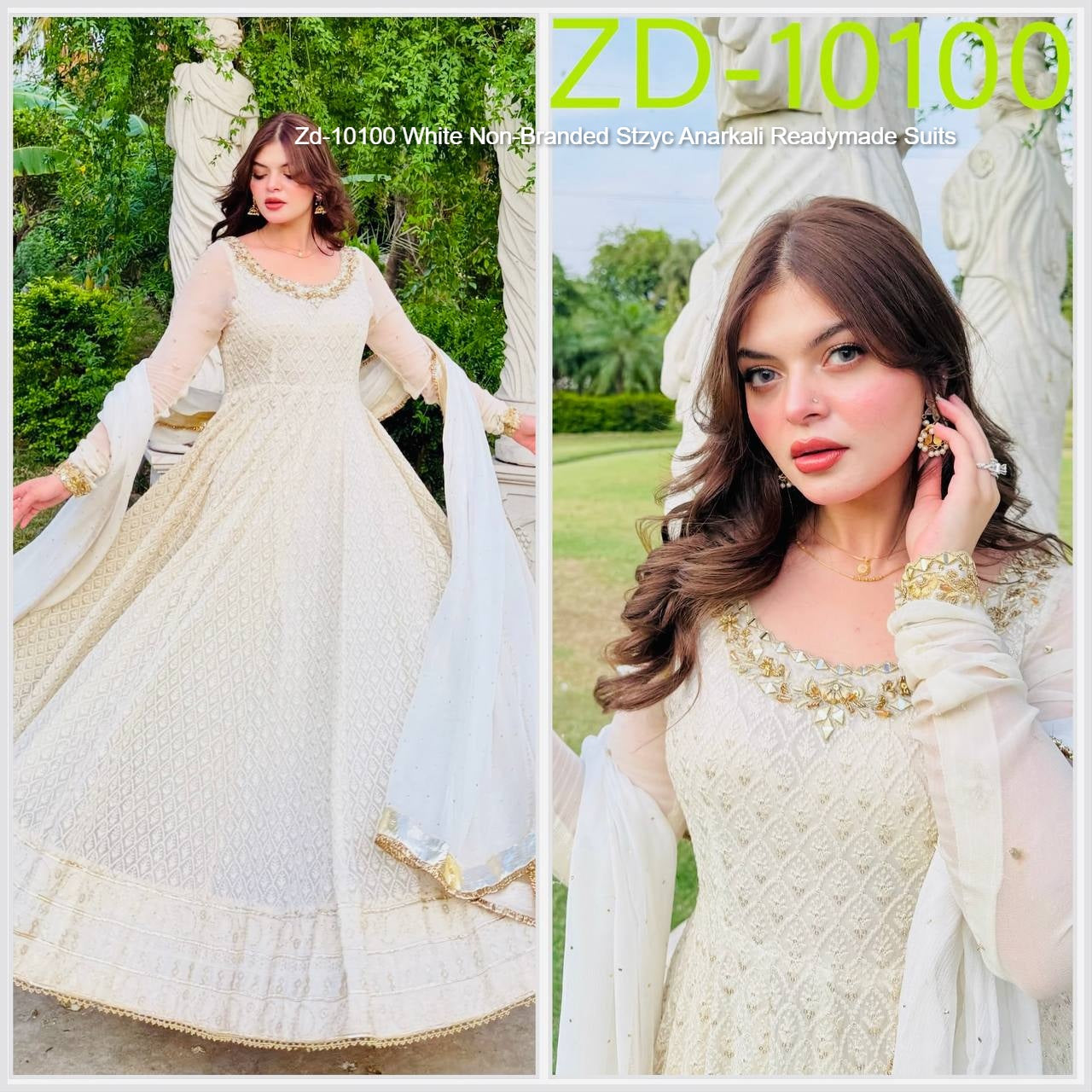 Zd-10100 White Non-Branded Stzyc Anarkali Readymade Suits