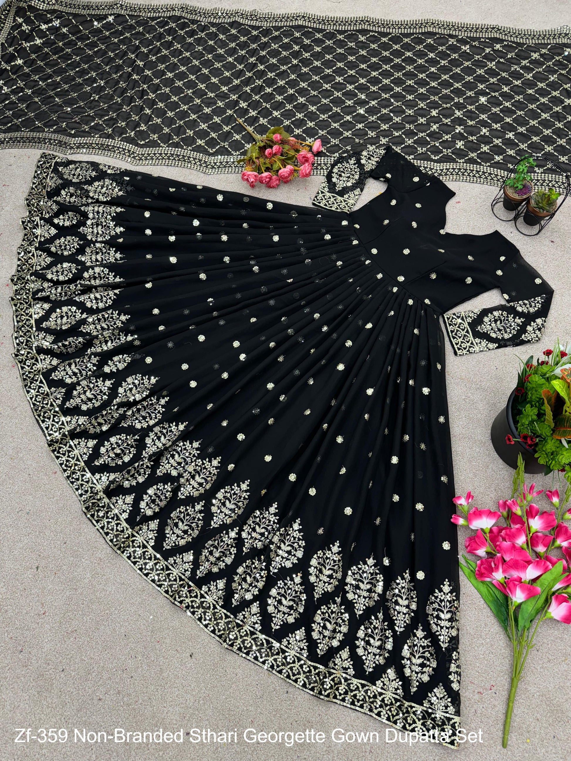 Zf-359 Non-Branded Sthari Georgette Gown Dupatta Set