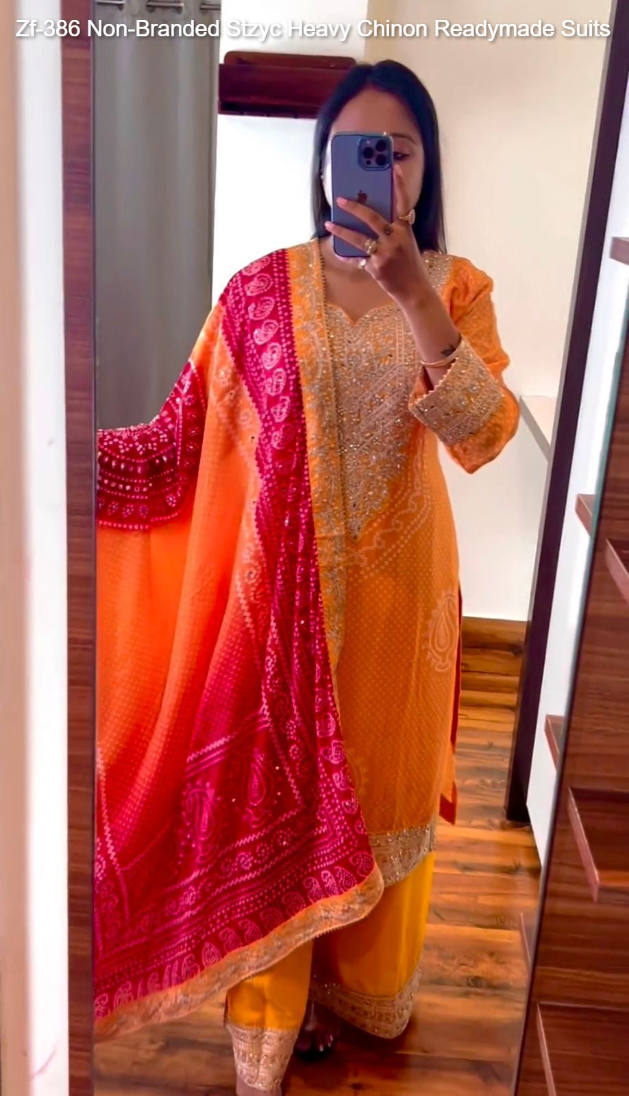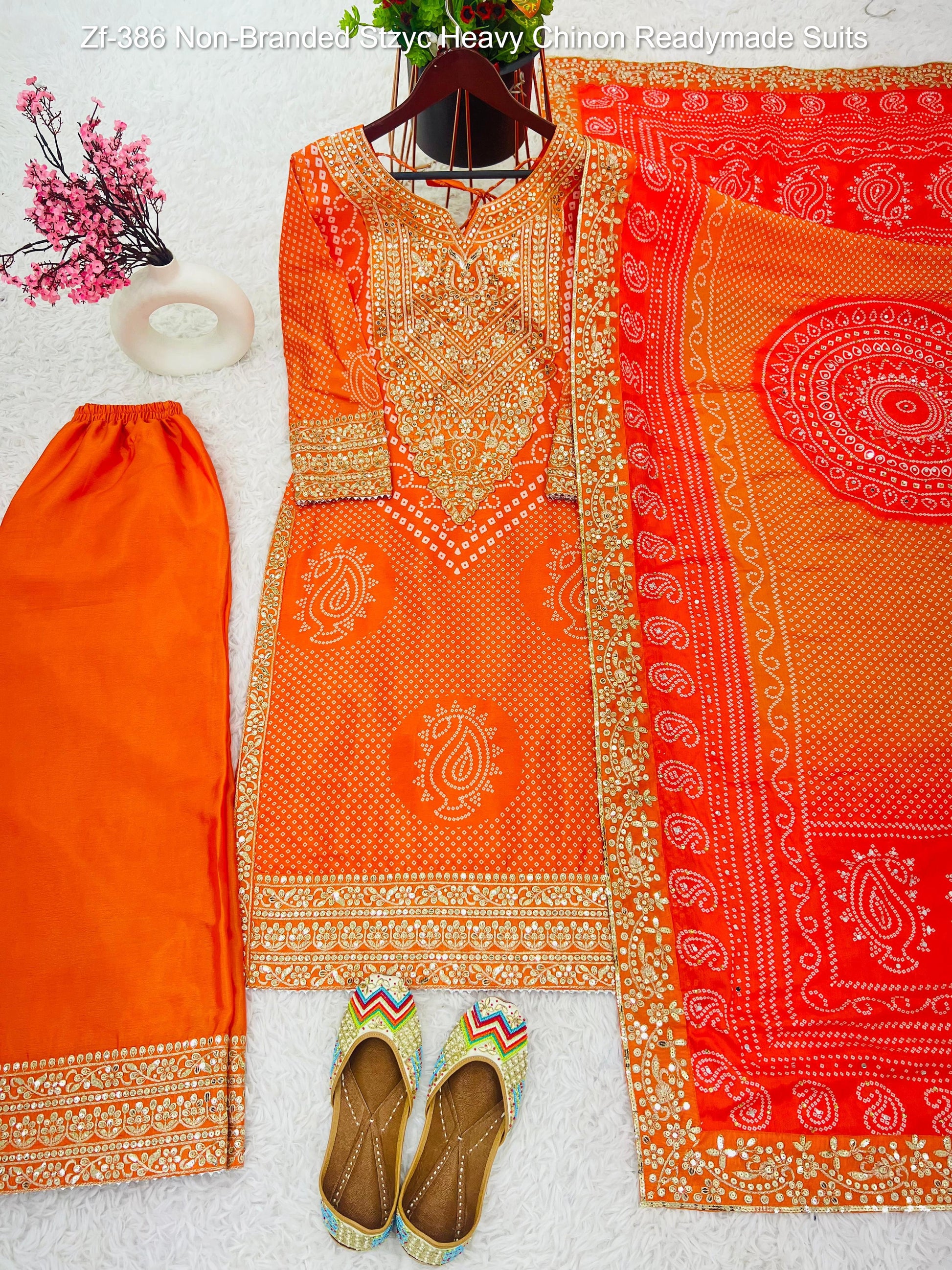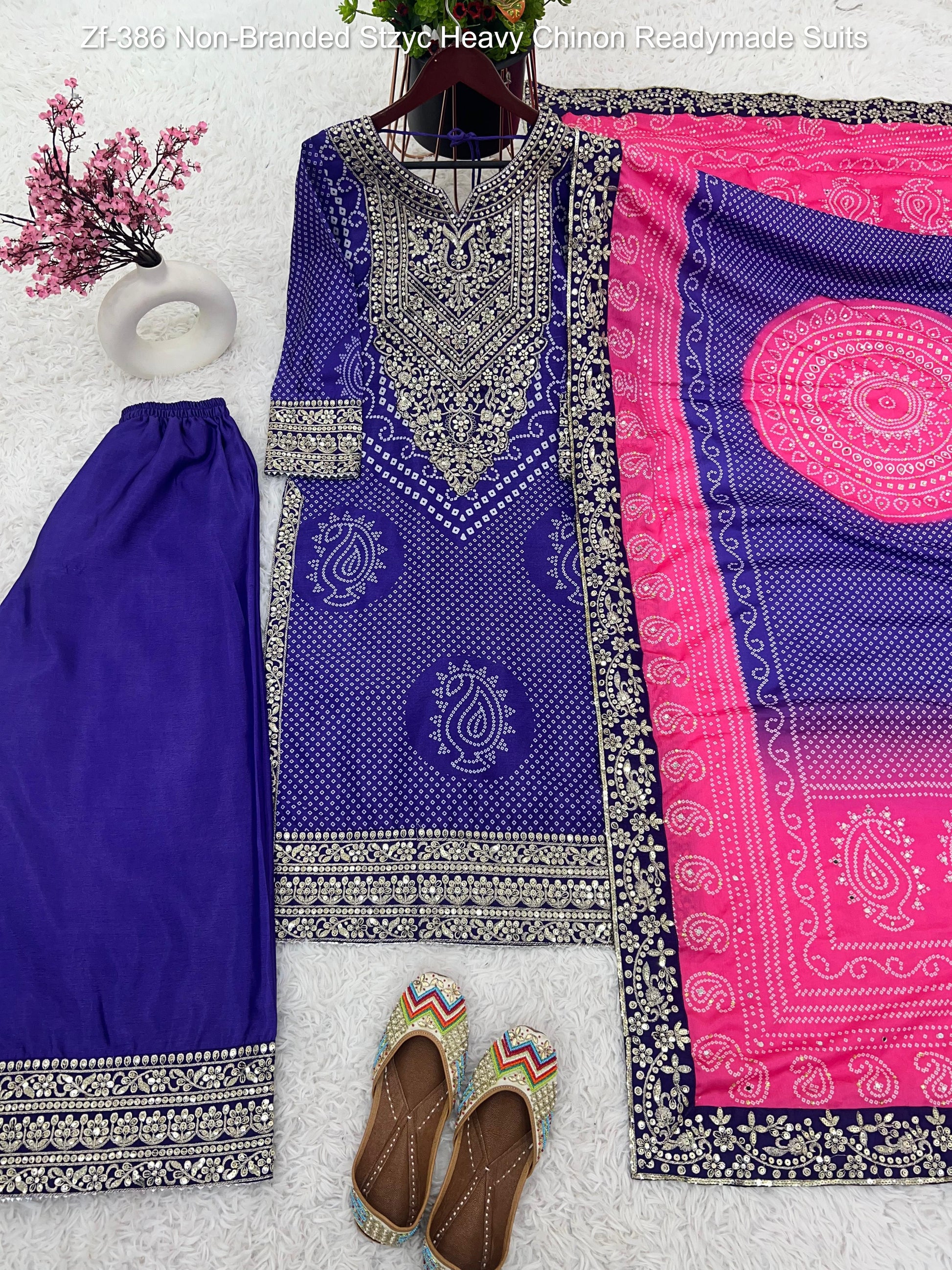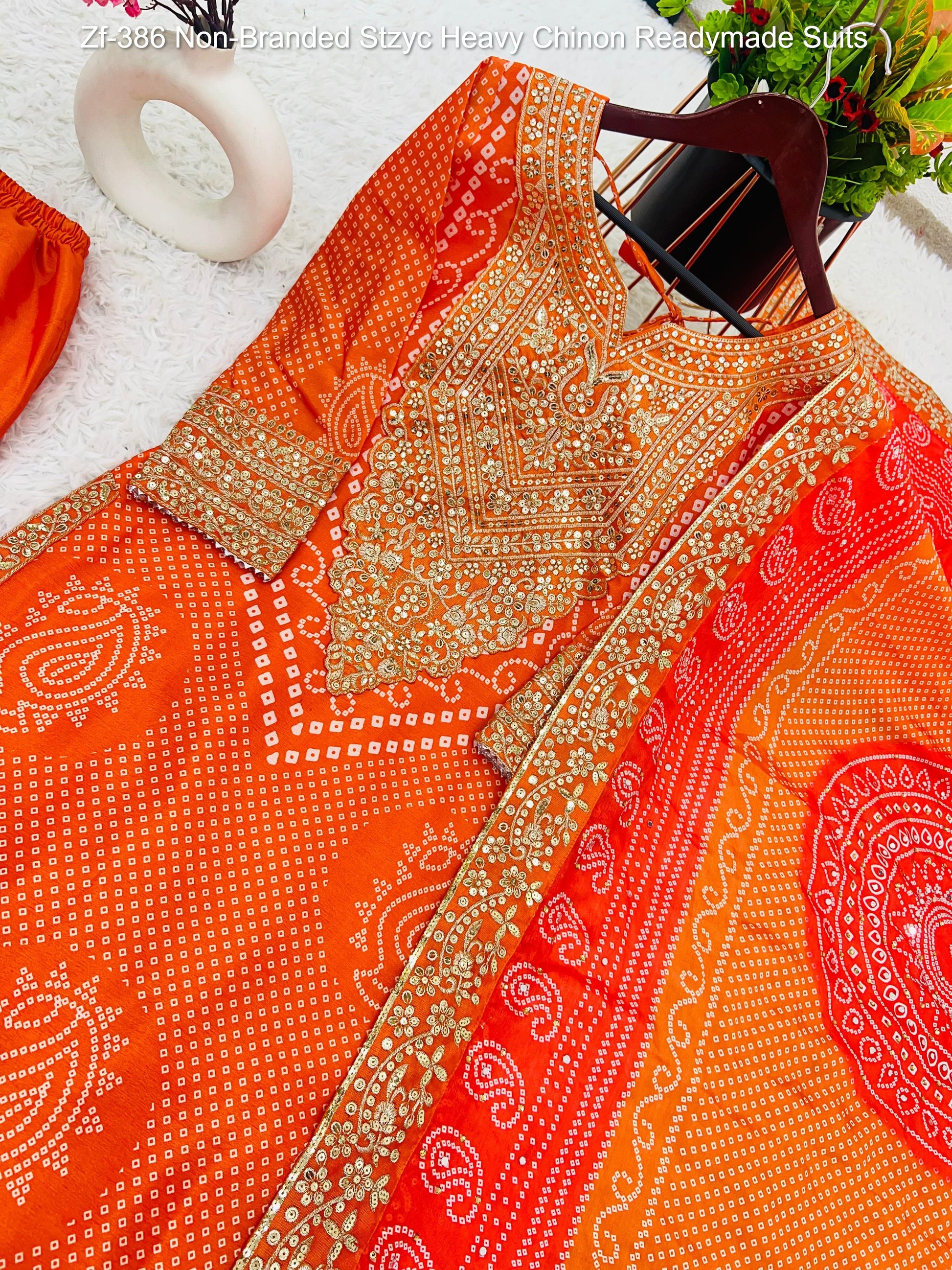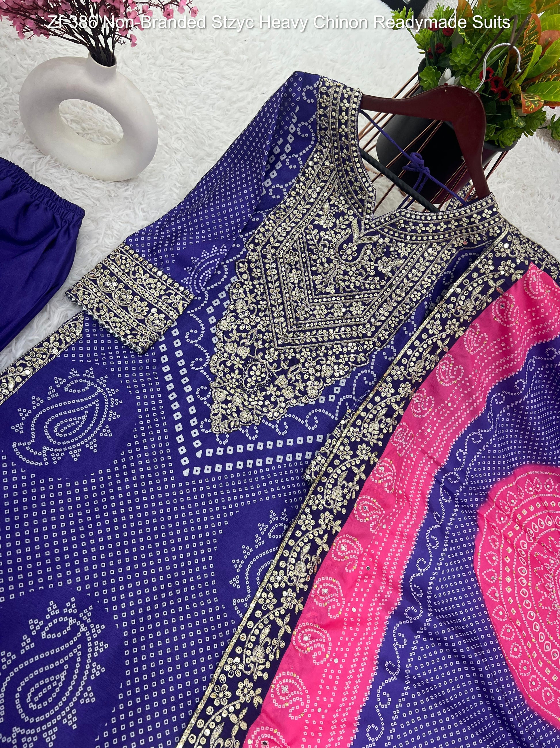 Zf-386 Non-Branded Stzyc Heavy Chinon Readymade Suits