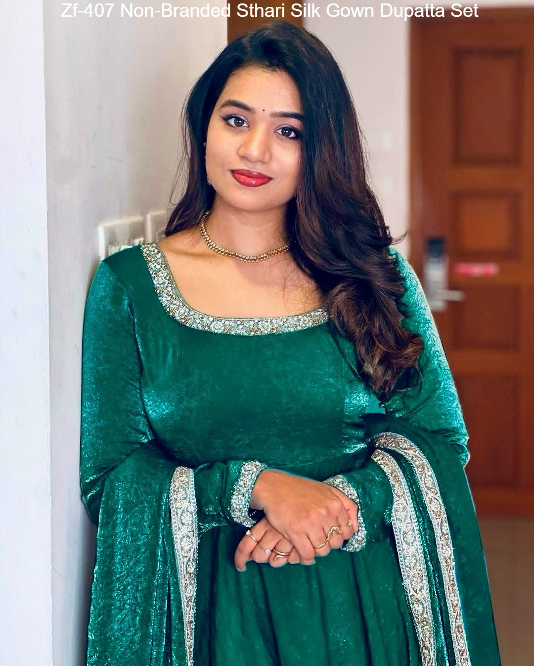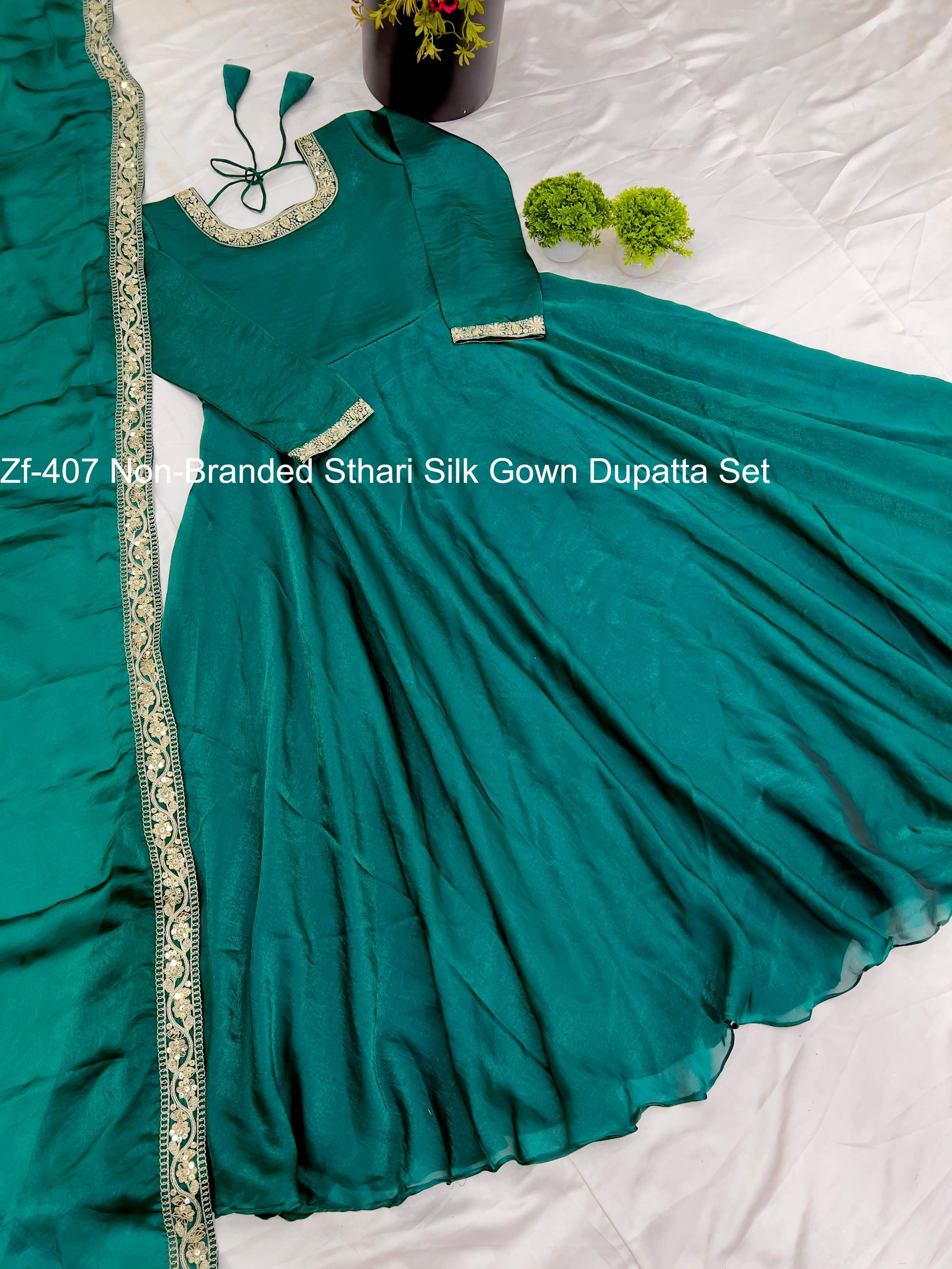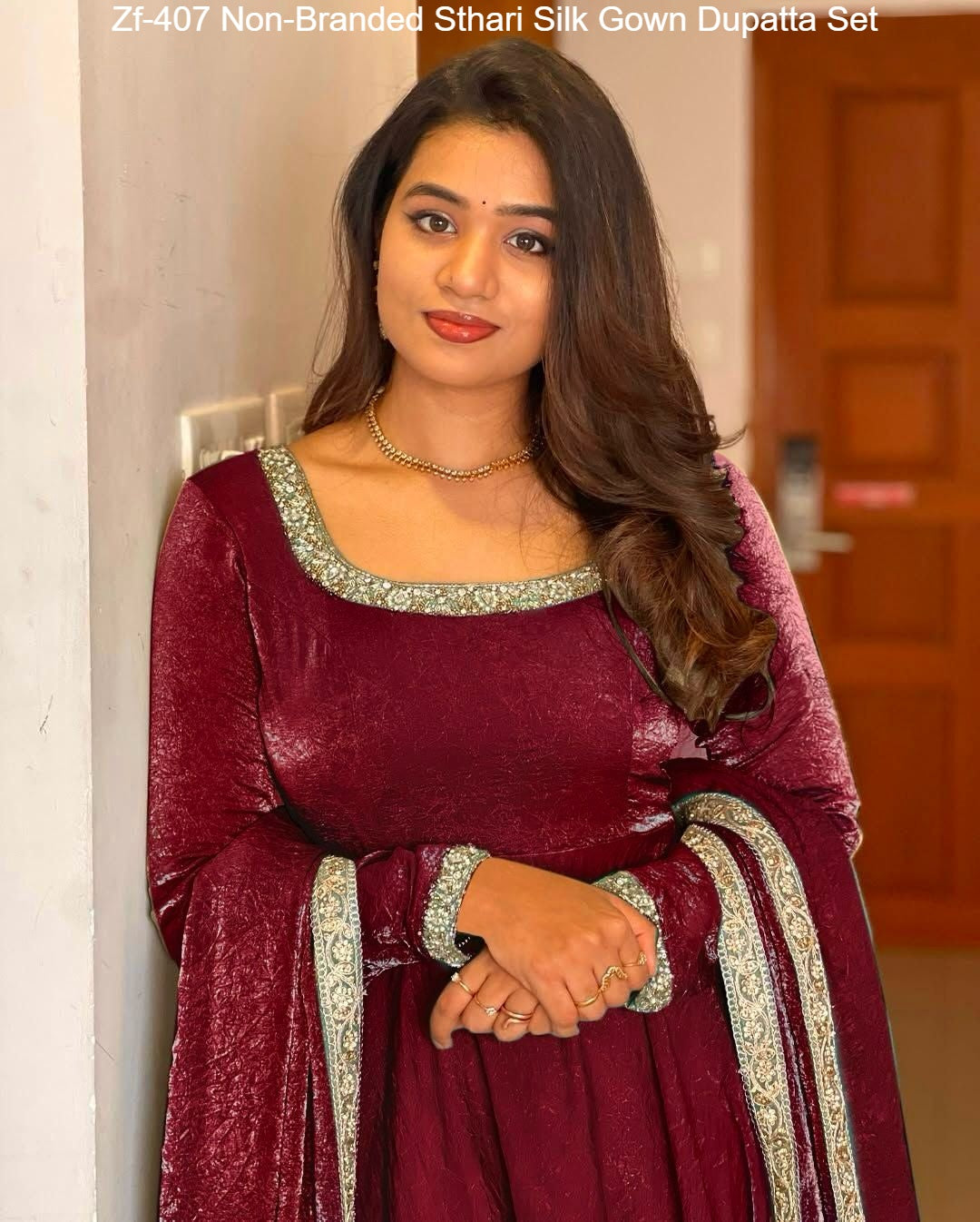 Zf-407 Non-Branded Sthari Silk Gown Dupatta Set