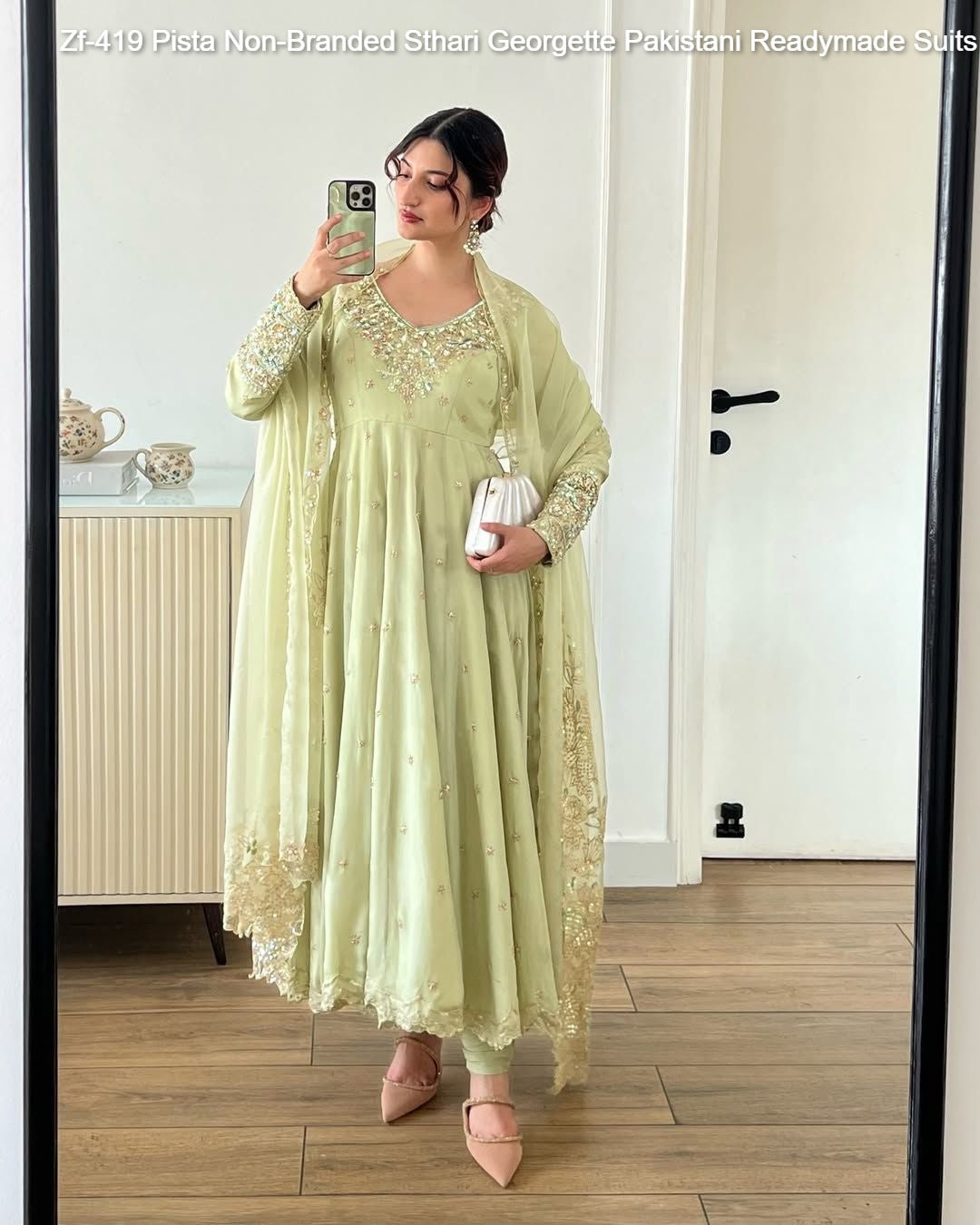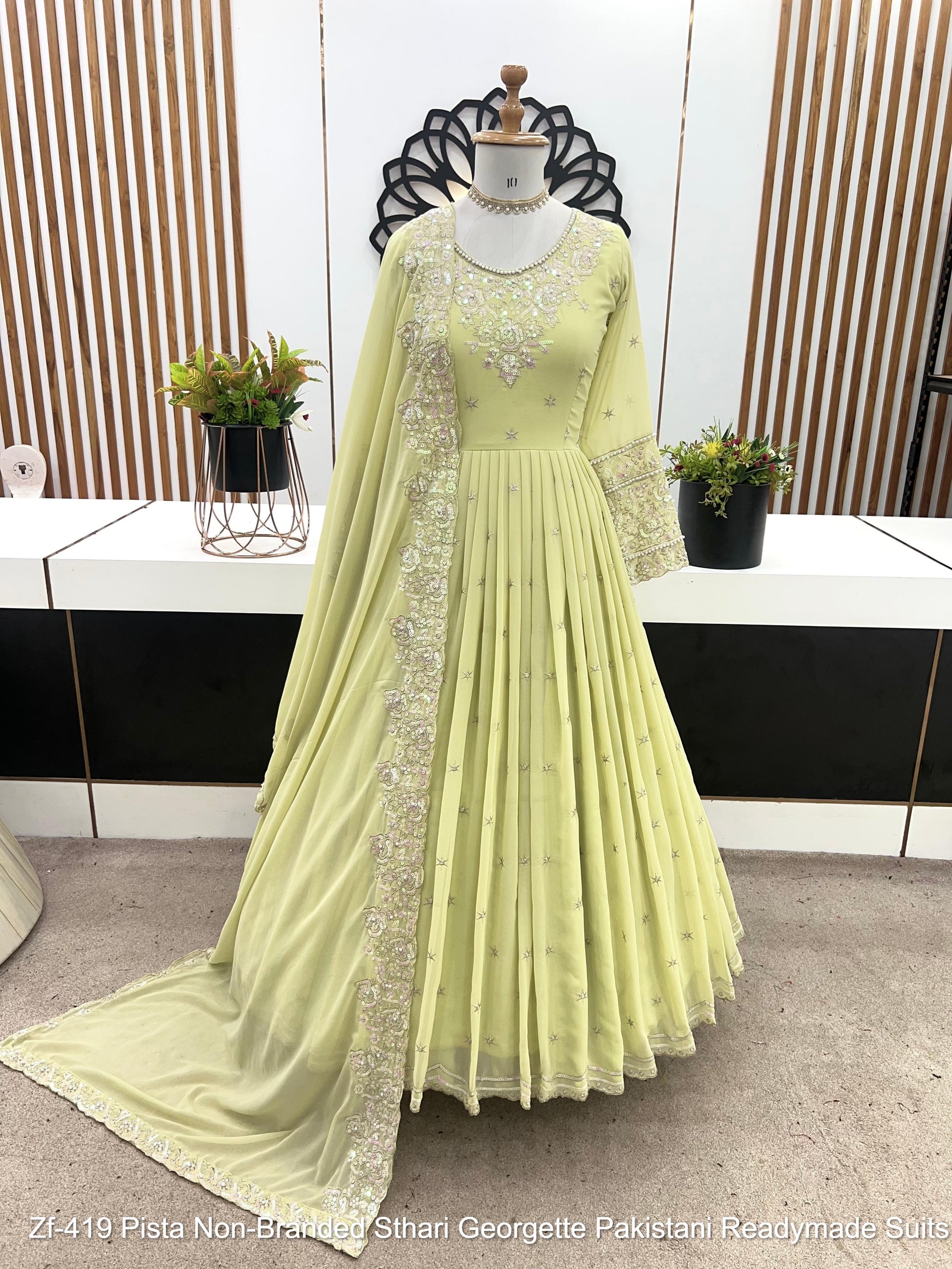 - Zf-419 Pista Non-Branded Sthari Georgette Pakistani Readymade Suits Dealer Ahmedabad Surat Wholesale Gujarat India Lowest Price Best Quality Buy Purchase Shipping Kurta Salwaar Kameez Also free Cash on delivery