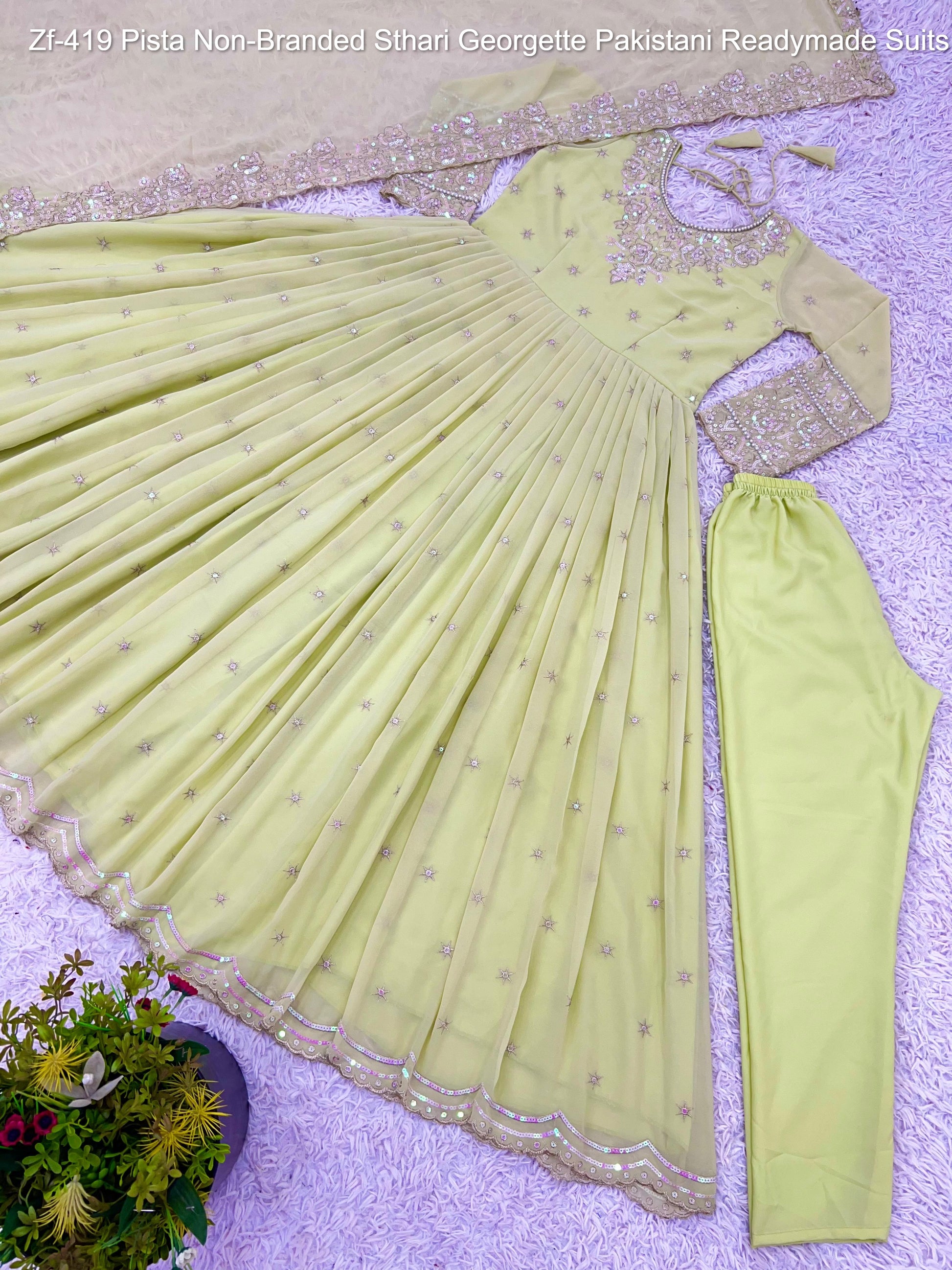 Zf-419 Pista Non-Branded Sthari Georgette Pakistani Readymade Suits