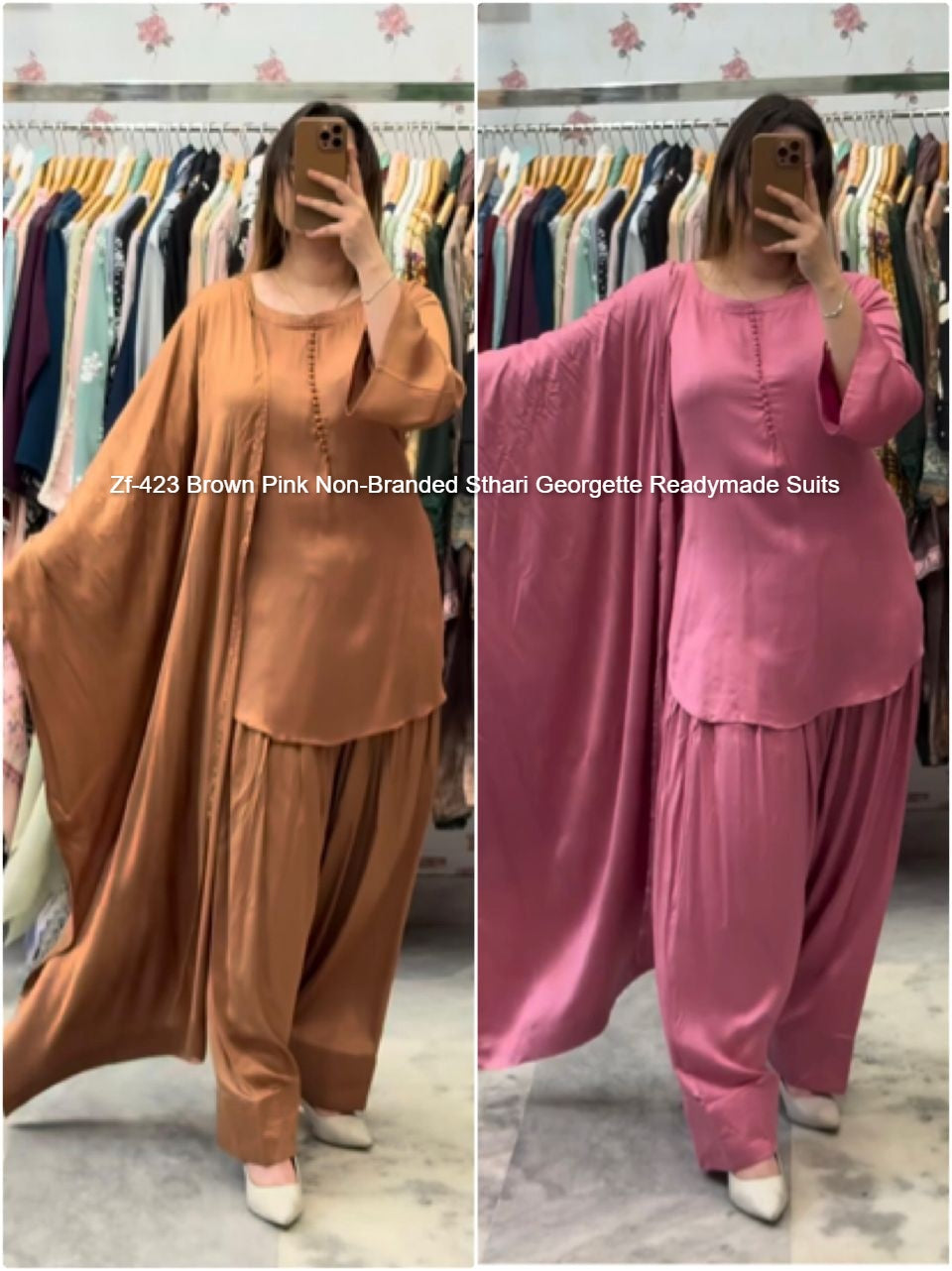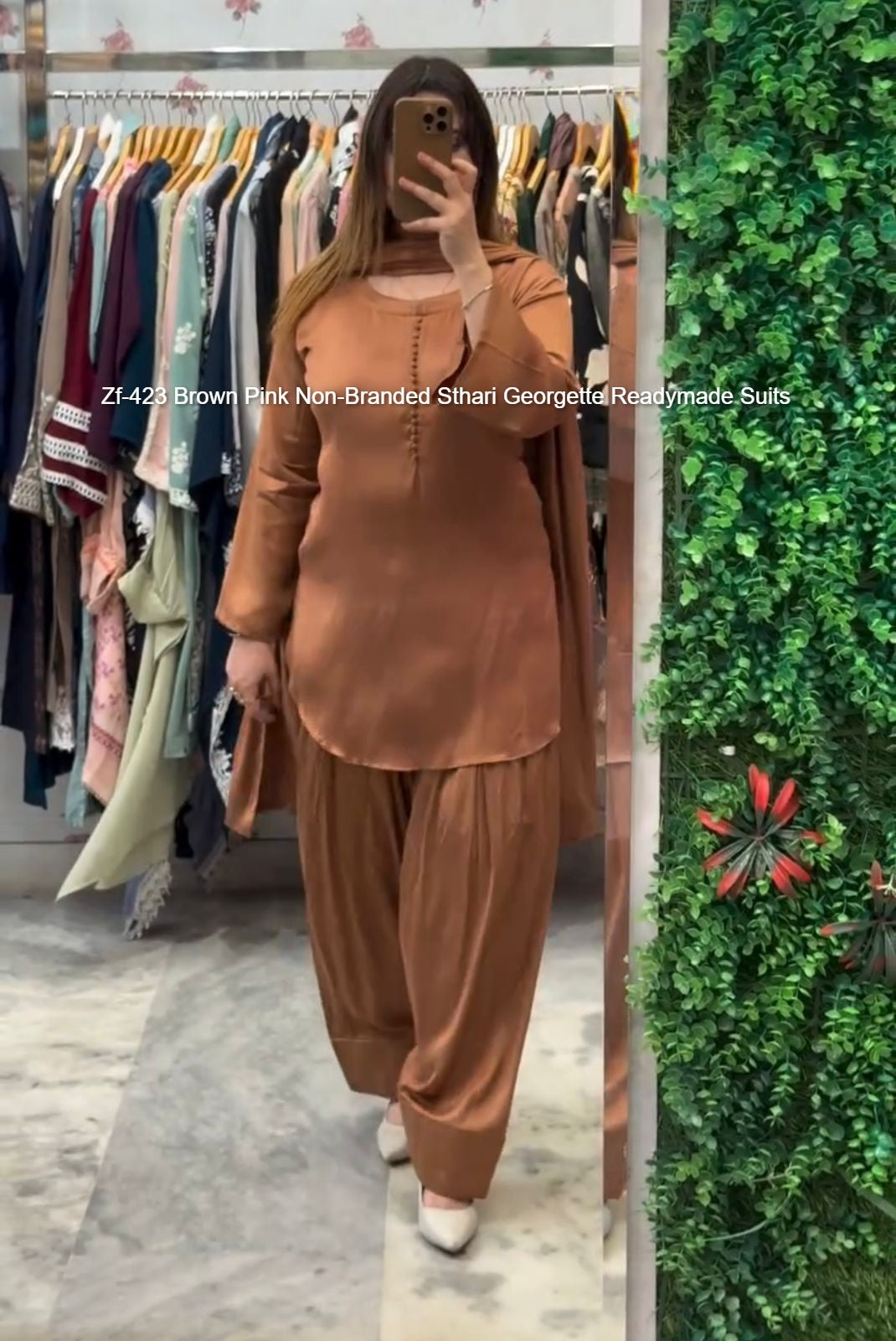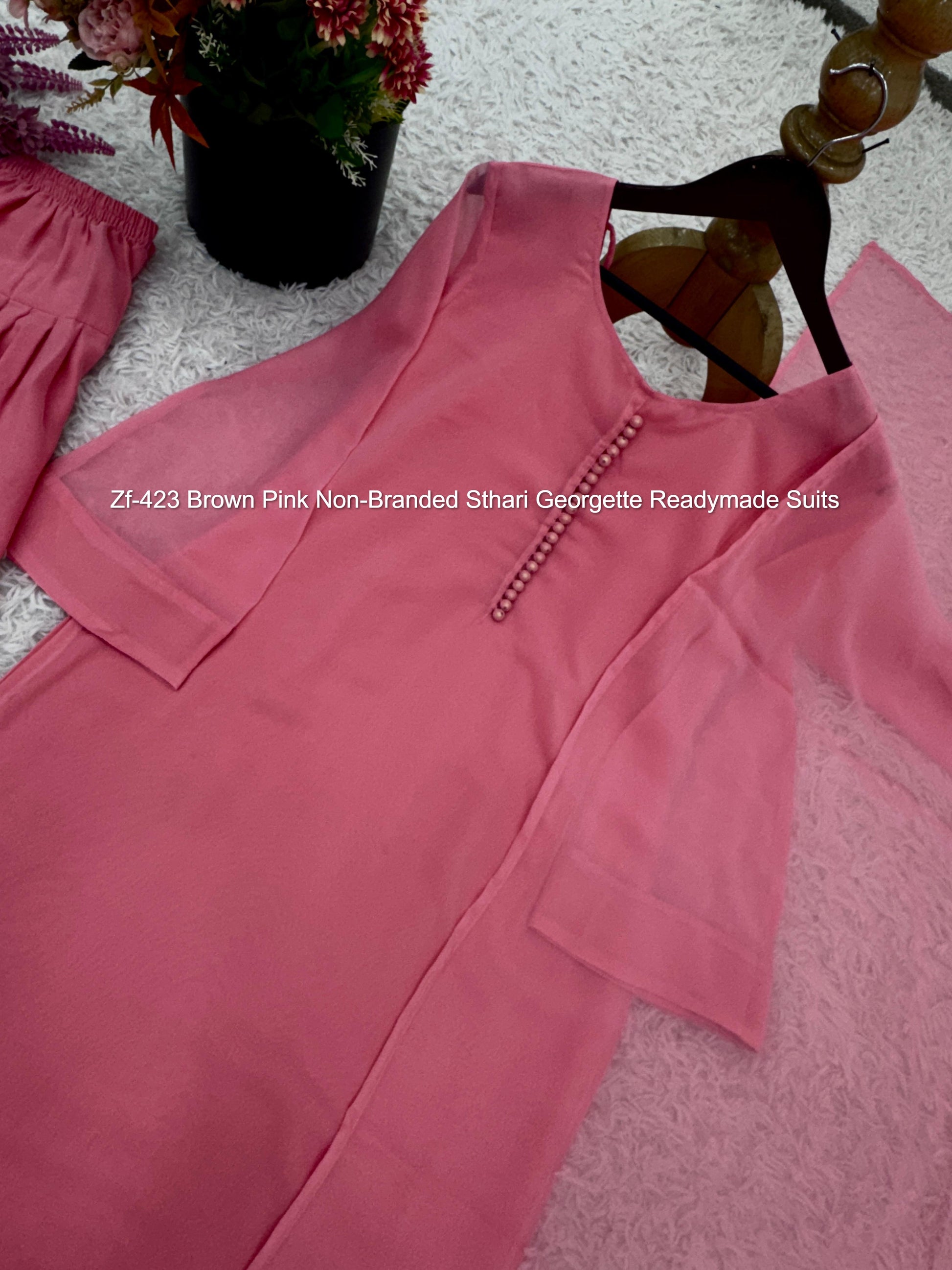 Zf-423 Brown Pink Non-Branded Sthari Georgette Readymade Suits
