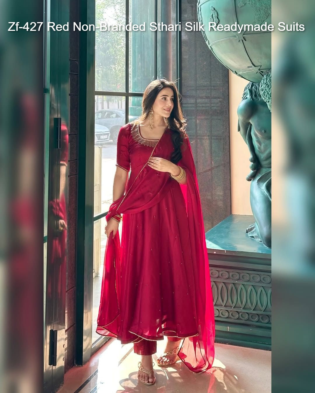 Zf-427 Red Non-Branded Sthari Silk Readymade Suits