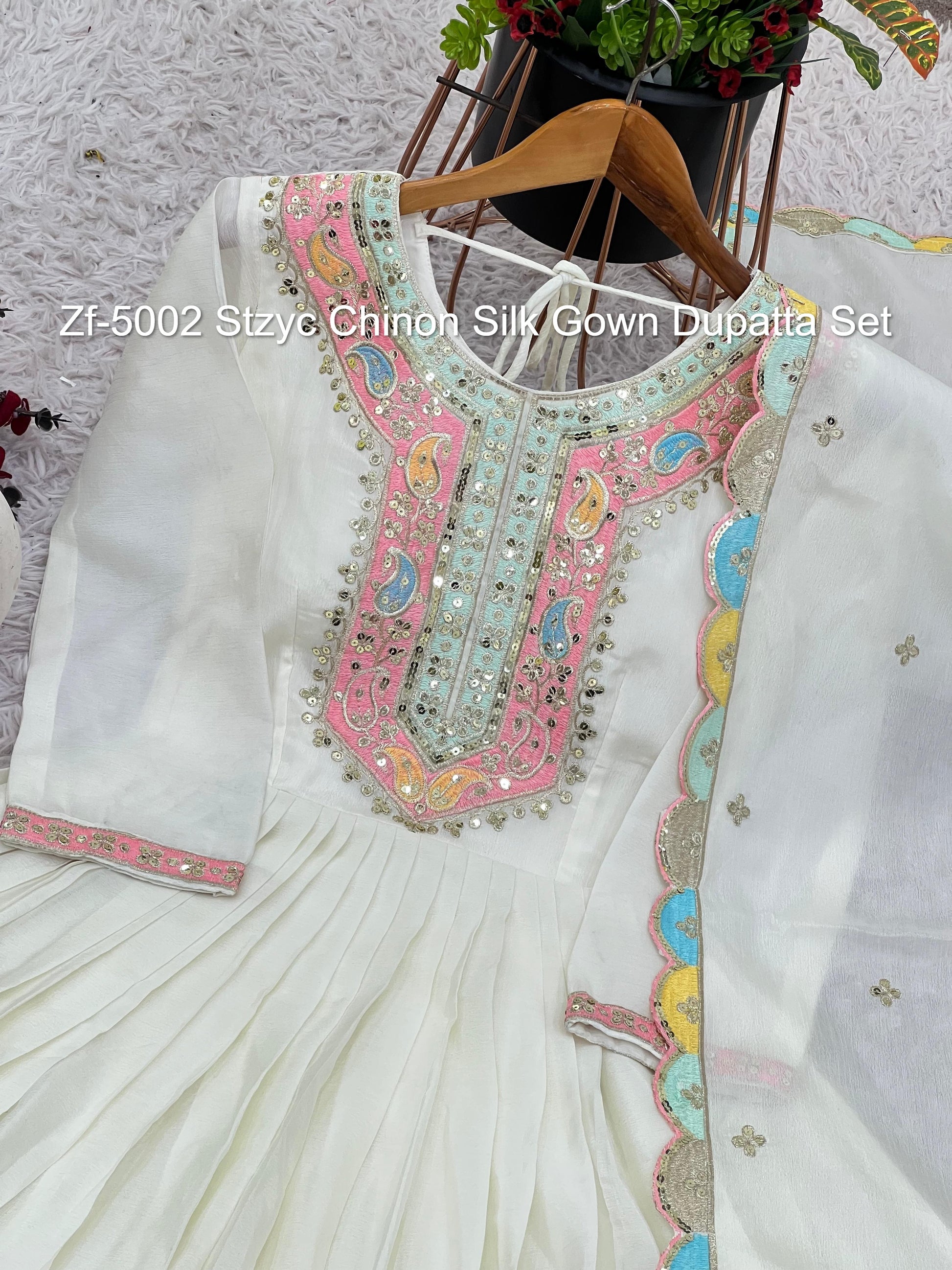 Zf-5002 Stzyc Chinon Silk Gown Dupatta Set