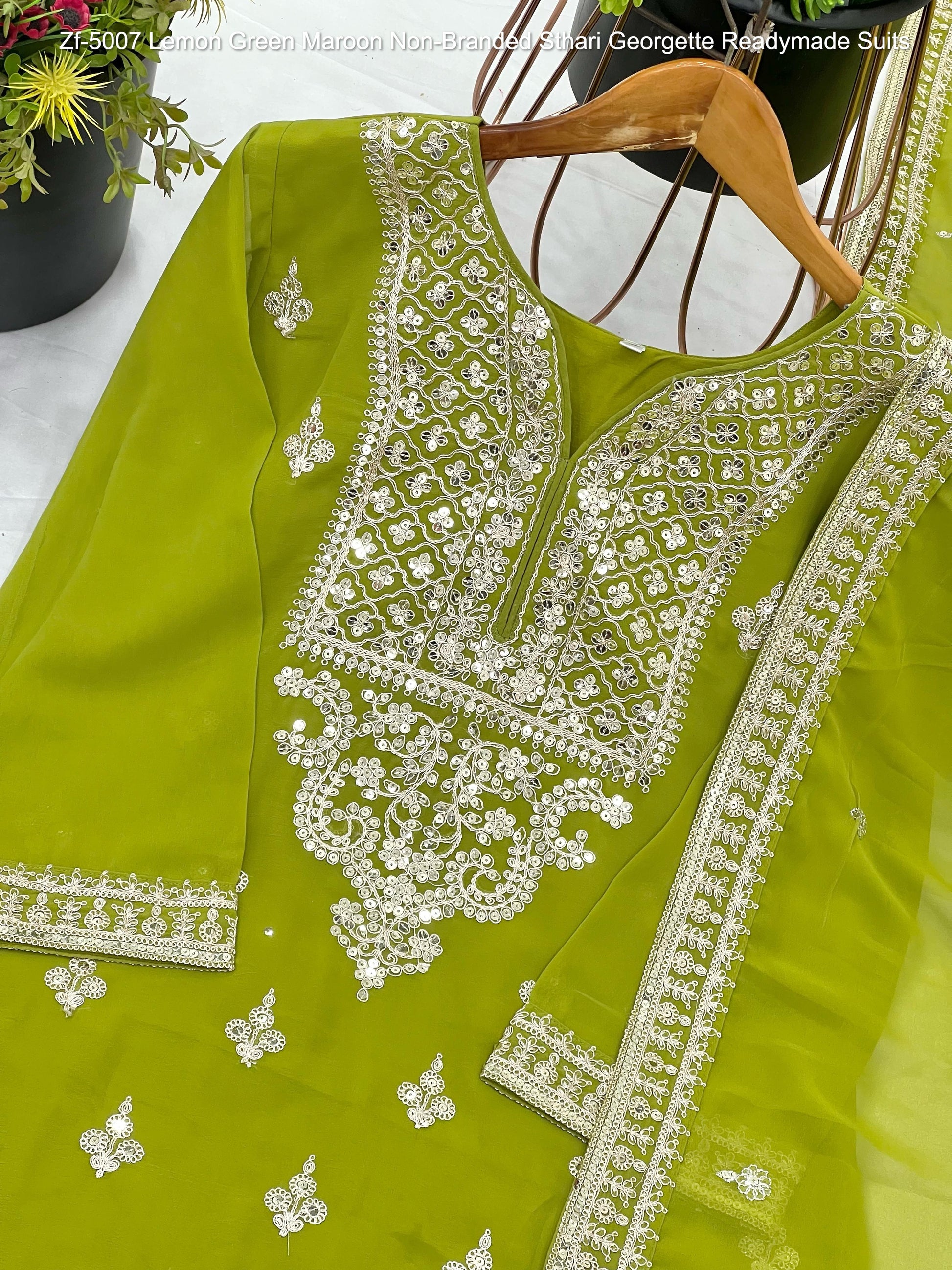 Zf-5007 Lemon Green Maroon Non-Branded Sthari Georgette Readymade Suits