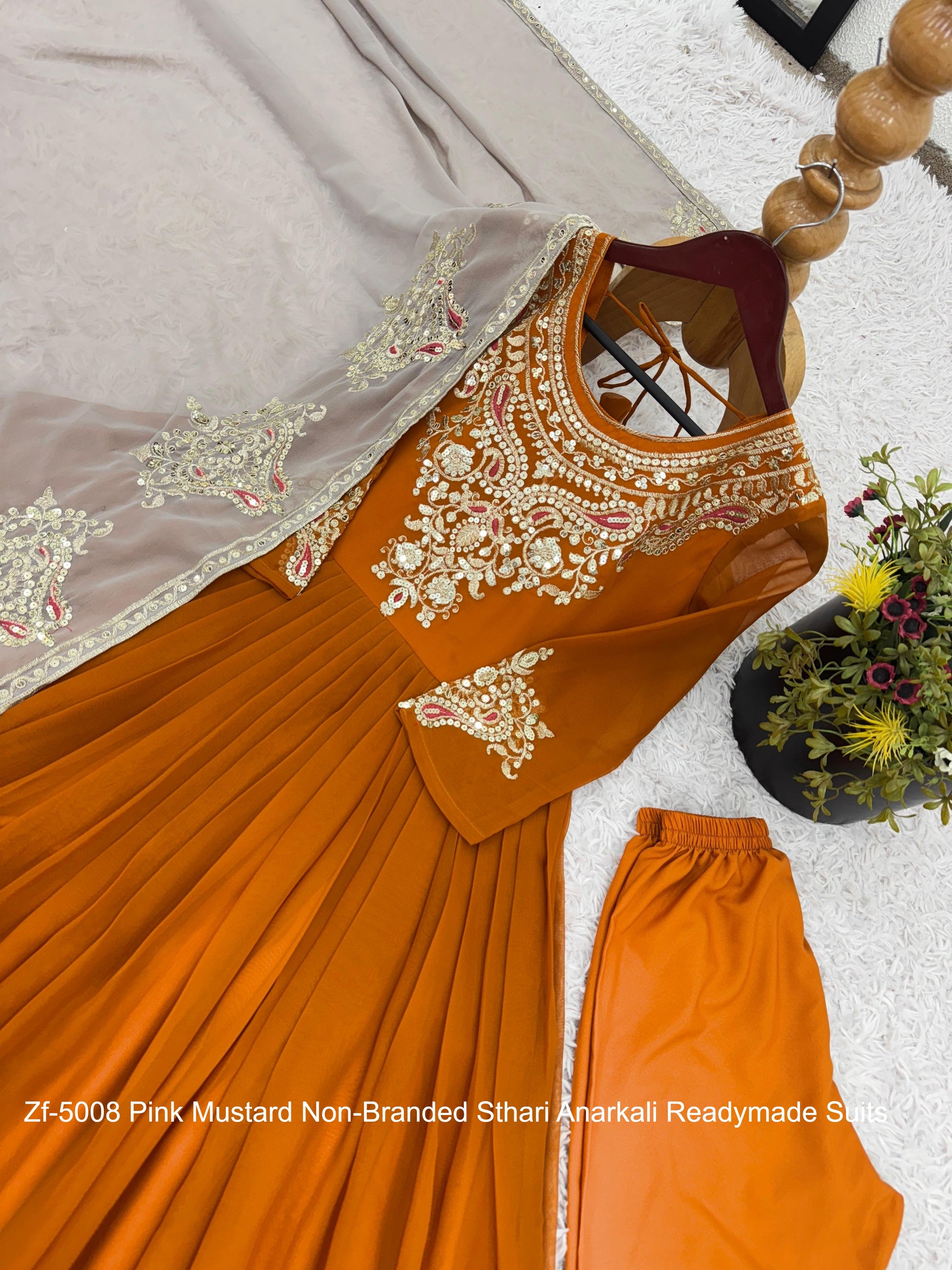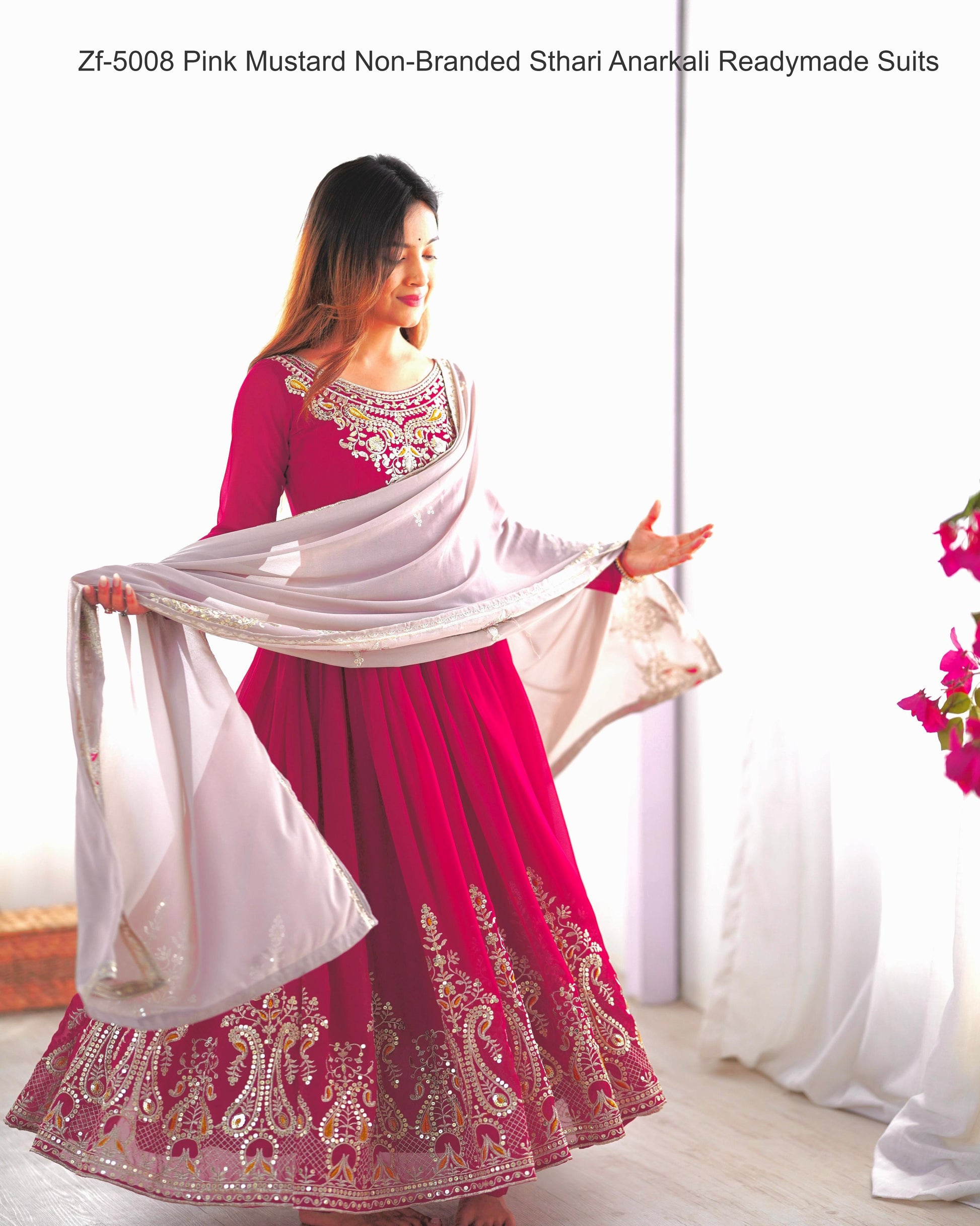 Zf-5008 Pink Mustard Non-Branded Sthari Anarkali Readymade Suits