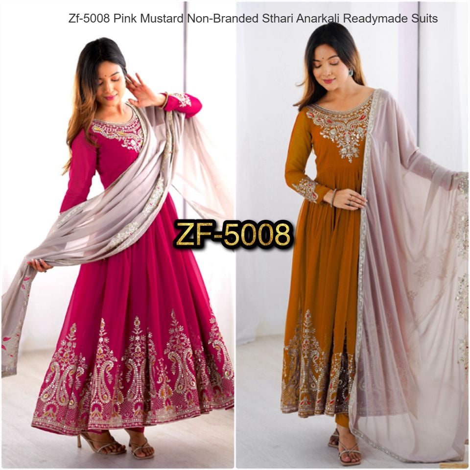 - Zf-5008 Pink Mustard Non-Branded Sthari Anarkali Readymade Suits Dealer Ahmedabad Surat Wholesale Gujarat India Lowest Price Best Quality Buy Purchase Shipping Kurta Salwaar Kameez Also free Cash on delivery