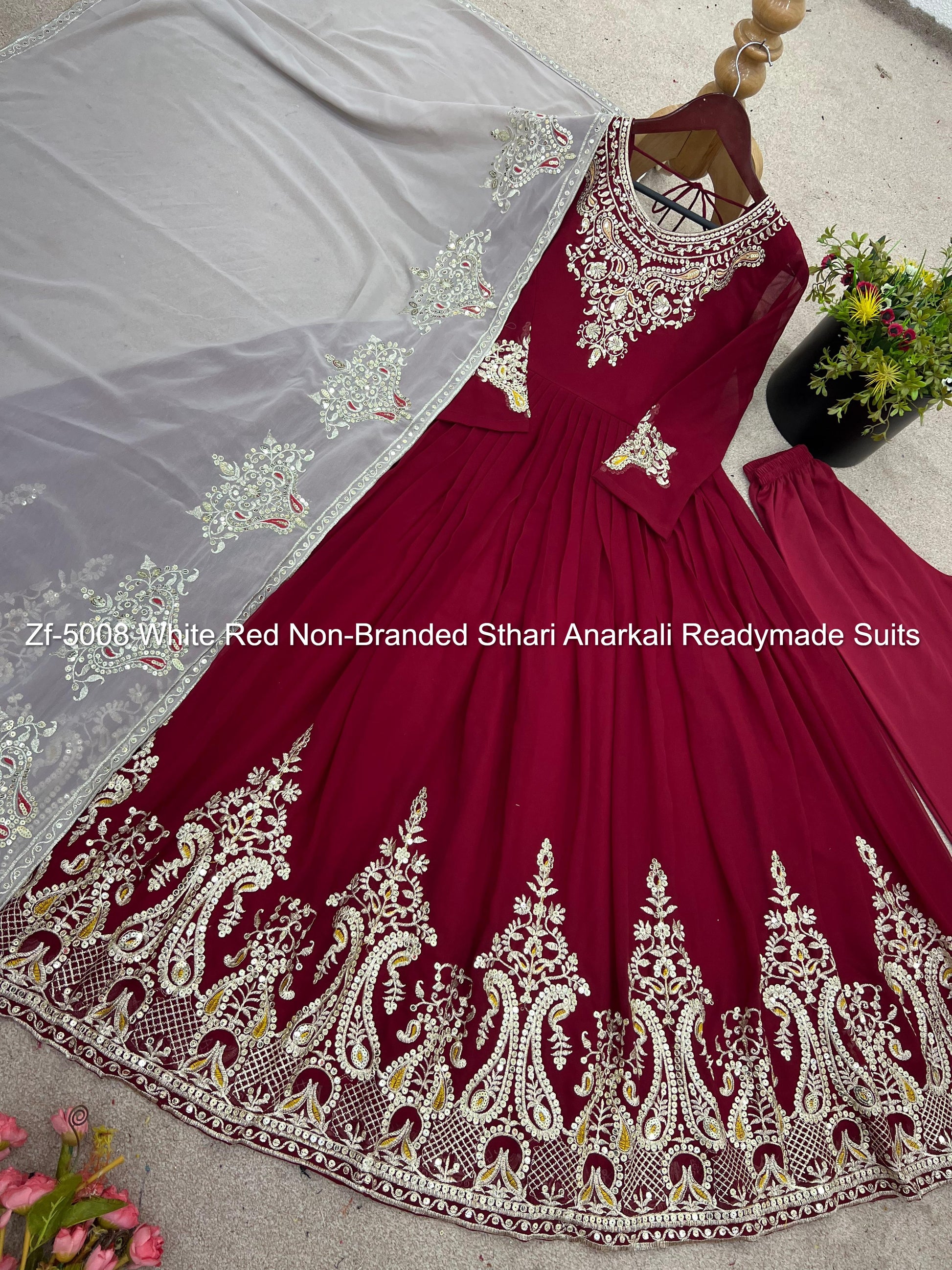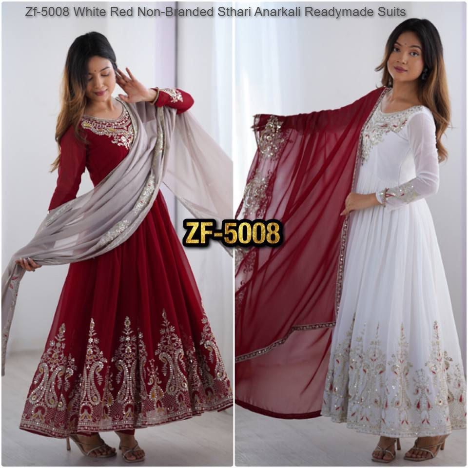 - Zf-5008 White Red Non-Branded Sthari Anarkali Readymade Suits Dealer Ahmedabad Surat Wholesale Gujarat India Lowest Price Best Quality Buy Purchase Shipping Kurta Salwaar Kameez Also free Cash on delivery