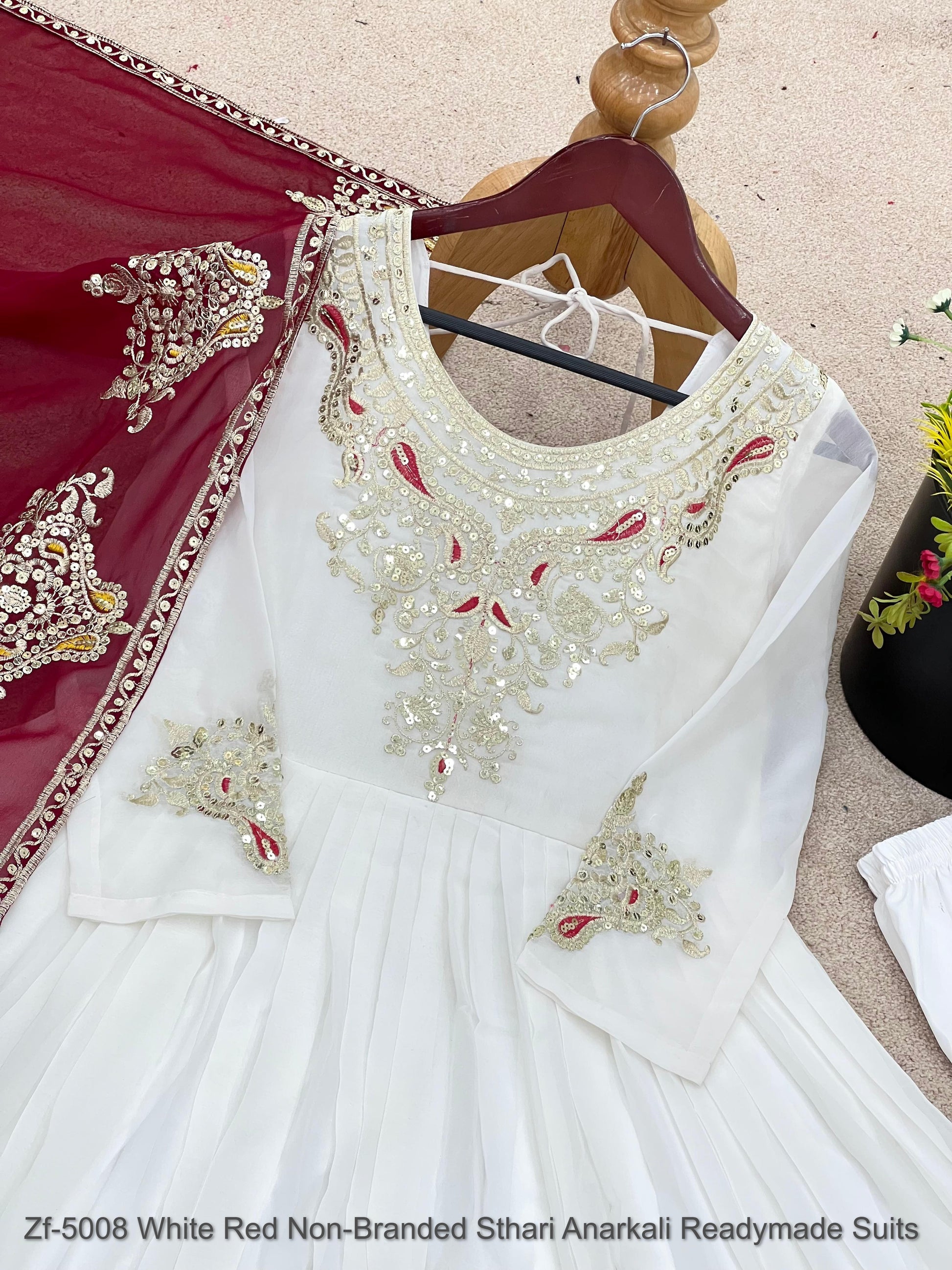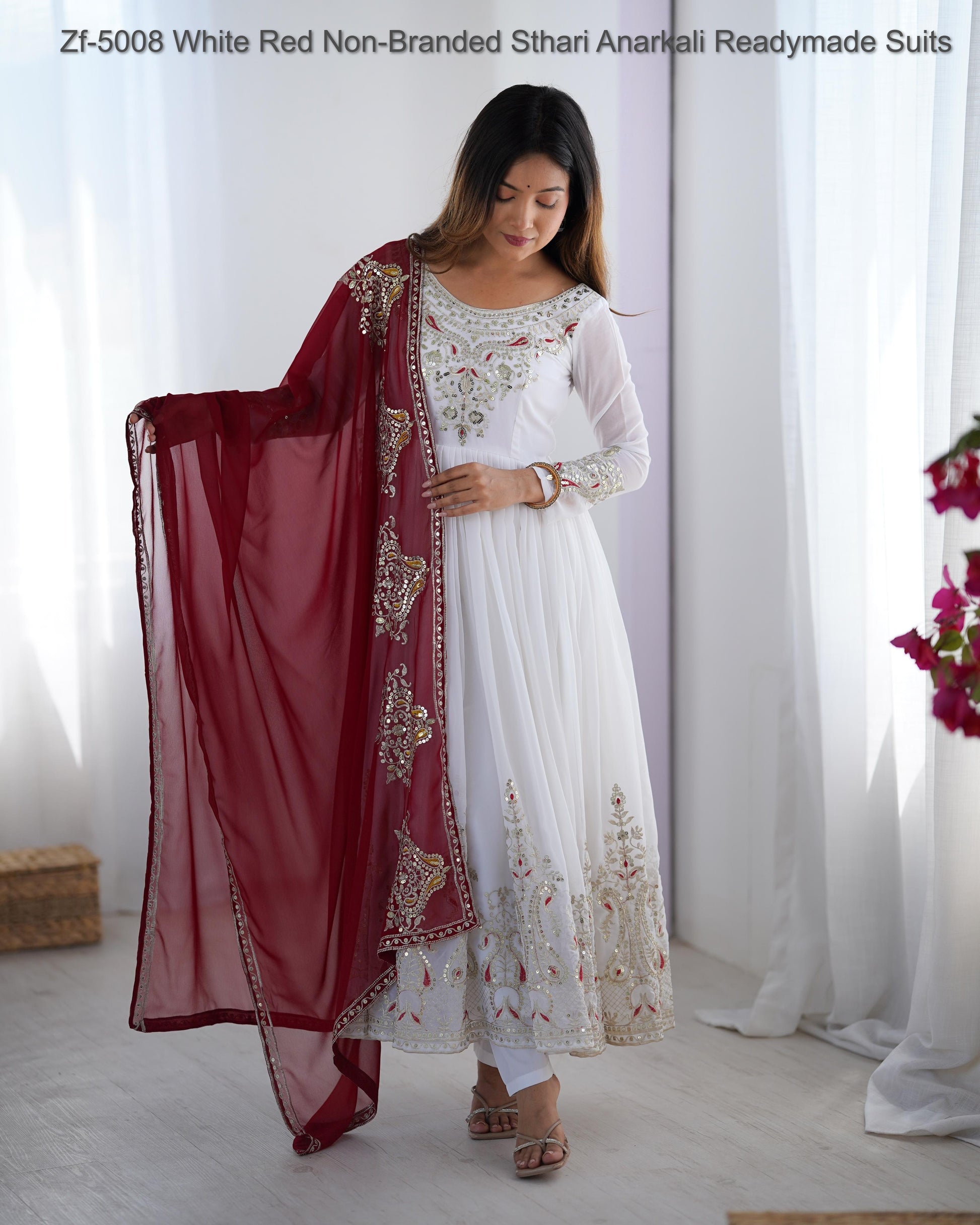 Zf-5008 White Red Non-Branded Sthari Anarkali Readymade Suits