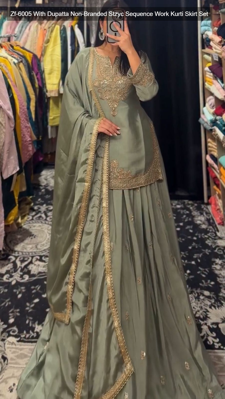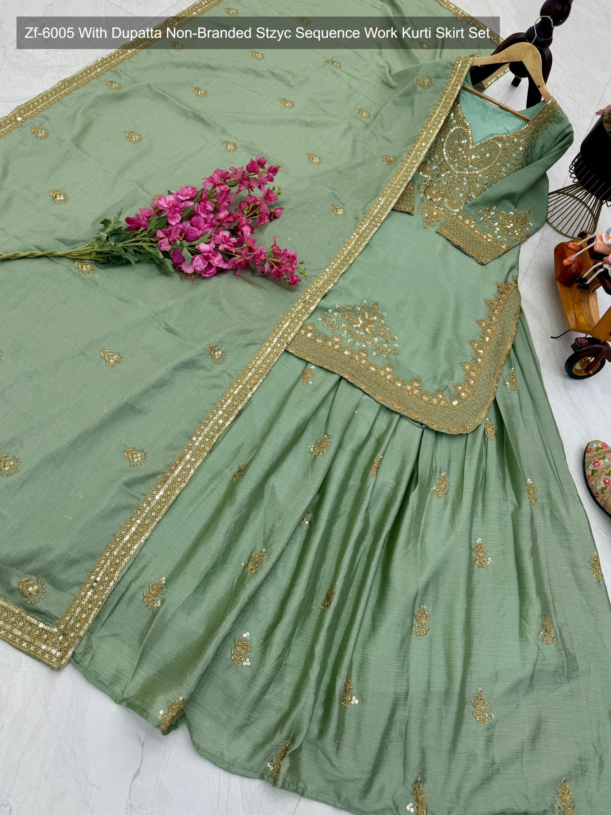 Zf-6005 With Dupatta Non-Branded Stzyc Sequence Work Kurti Skirt Set